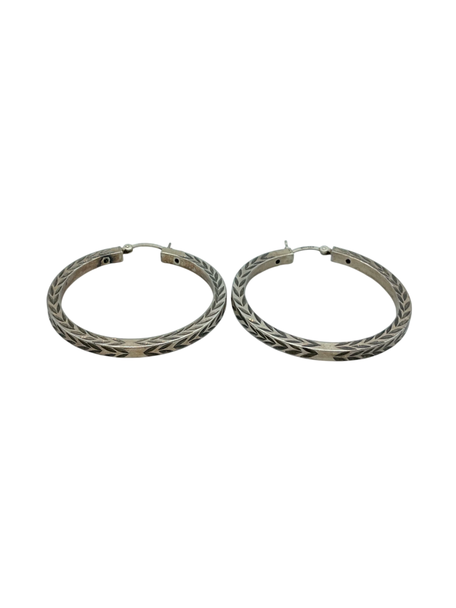 Enormous designer solid sterling silver 925 hoop earrings engraved with wheat.
