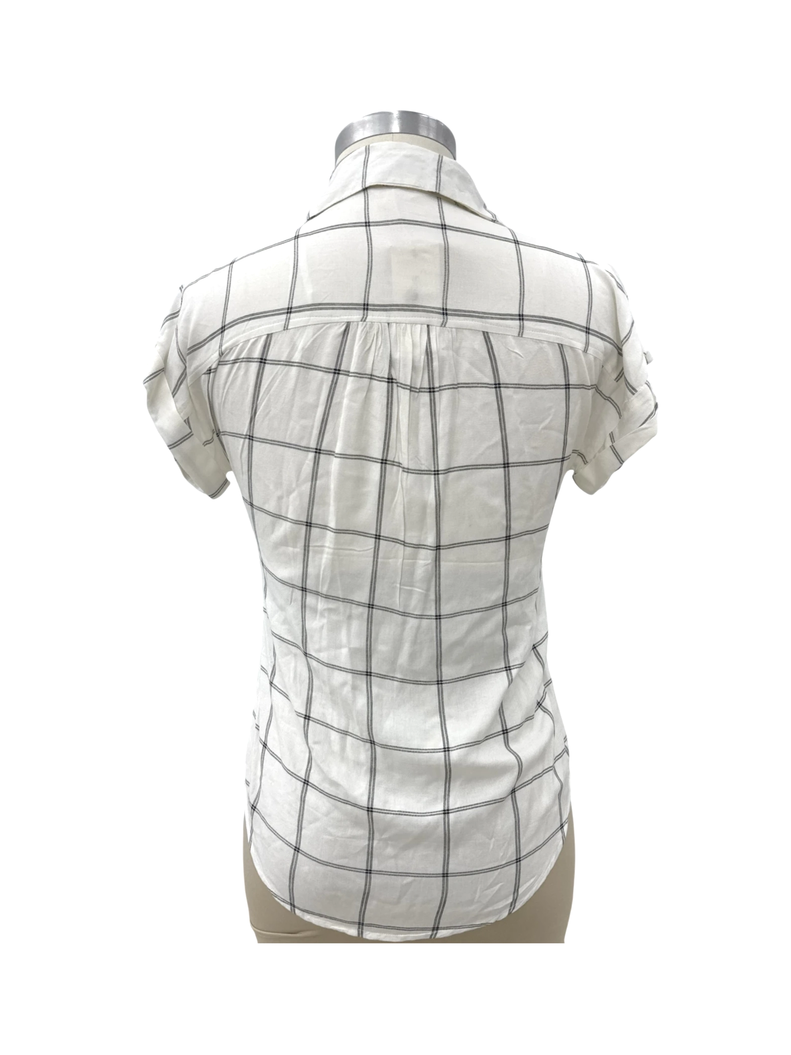 This pre-owned Sim & Sam blouse is a stylish addition to any wardrobe. Featuring a classic plaid pattern in white, this button-up shirt is perfect for warm weather. Crafted from lightweight rayon fabric, it offers comfort and breathability. The short sleeves and collared neckline create a polished yet relaxed look. Ideal for casual outings or dressing up for a light day, this blouse is a versatile piece. Made in India, and it's a great choice for those seeking a stylish and comfortable top.