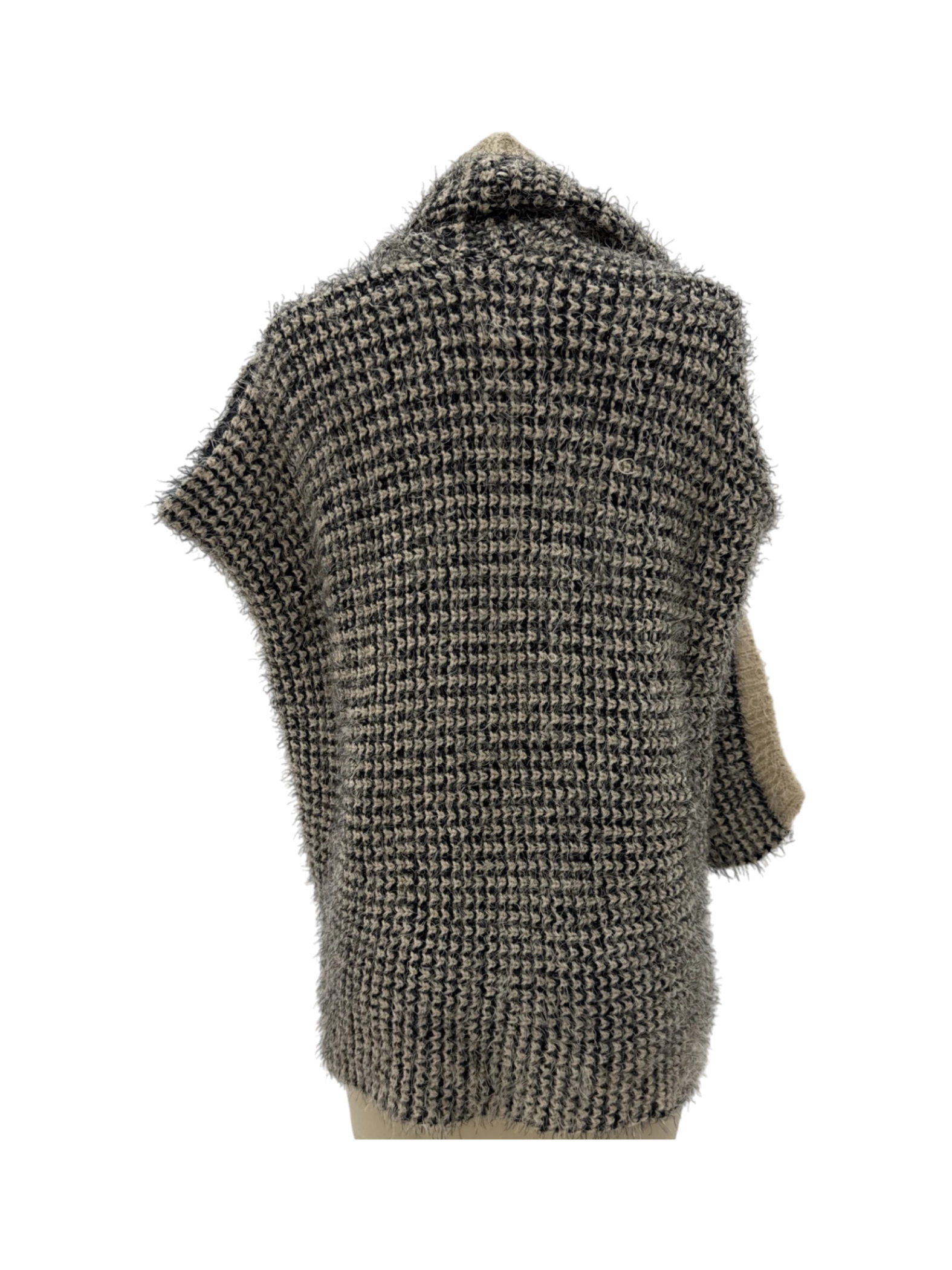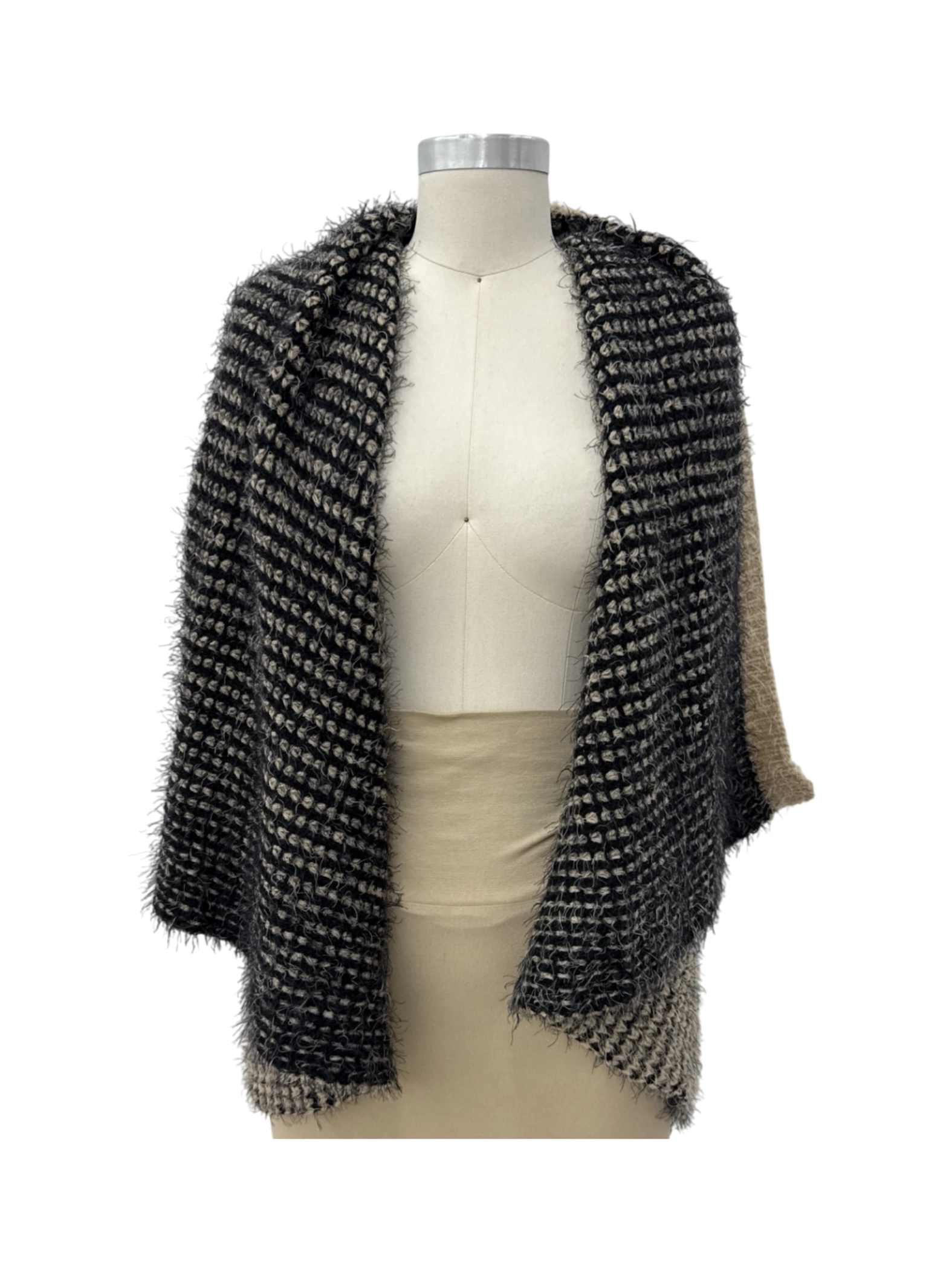 Elevate your wardrobe with this stylish Simply Noelle cardigan. Featuring a unique black and beige striped pattern, this open-front cardigan is perfect for layering. Made from a comfortable unknown material, it offers a relaxed fit, ideal for fall and winter. The open front design adds a touch of sophistication, making it a versatile piece for any occasion. Secondhand, this cardigan is in excellent condition and ready to become a staple in your collection.