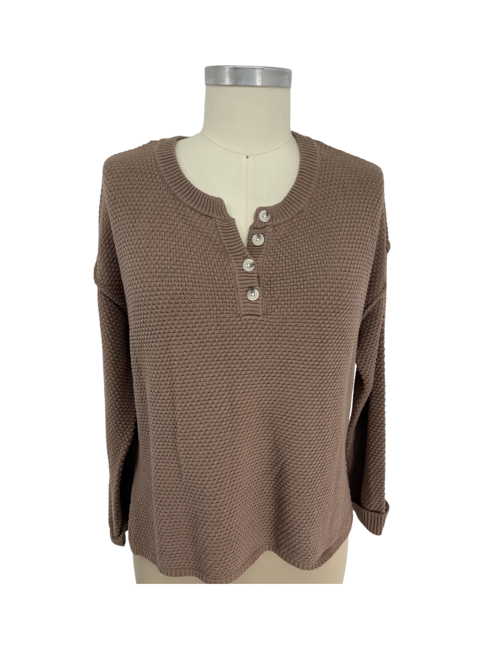 Elevate your fall and winter wardrobe with this pre-loved Sincerely Jules sweater. This cozy sweater features a classic round neck, button-up henley detail and a timeless design. Crafted from a comfortable cotton blend, this sweater is perfect for everyday wear, offering both style and warmth. Whether you're running errands or meeting friends, this sweater is a versatile addition to any outfit. Shop now for a chic and sustainable fashion choice!