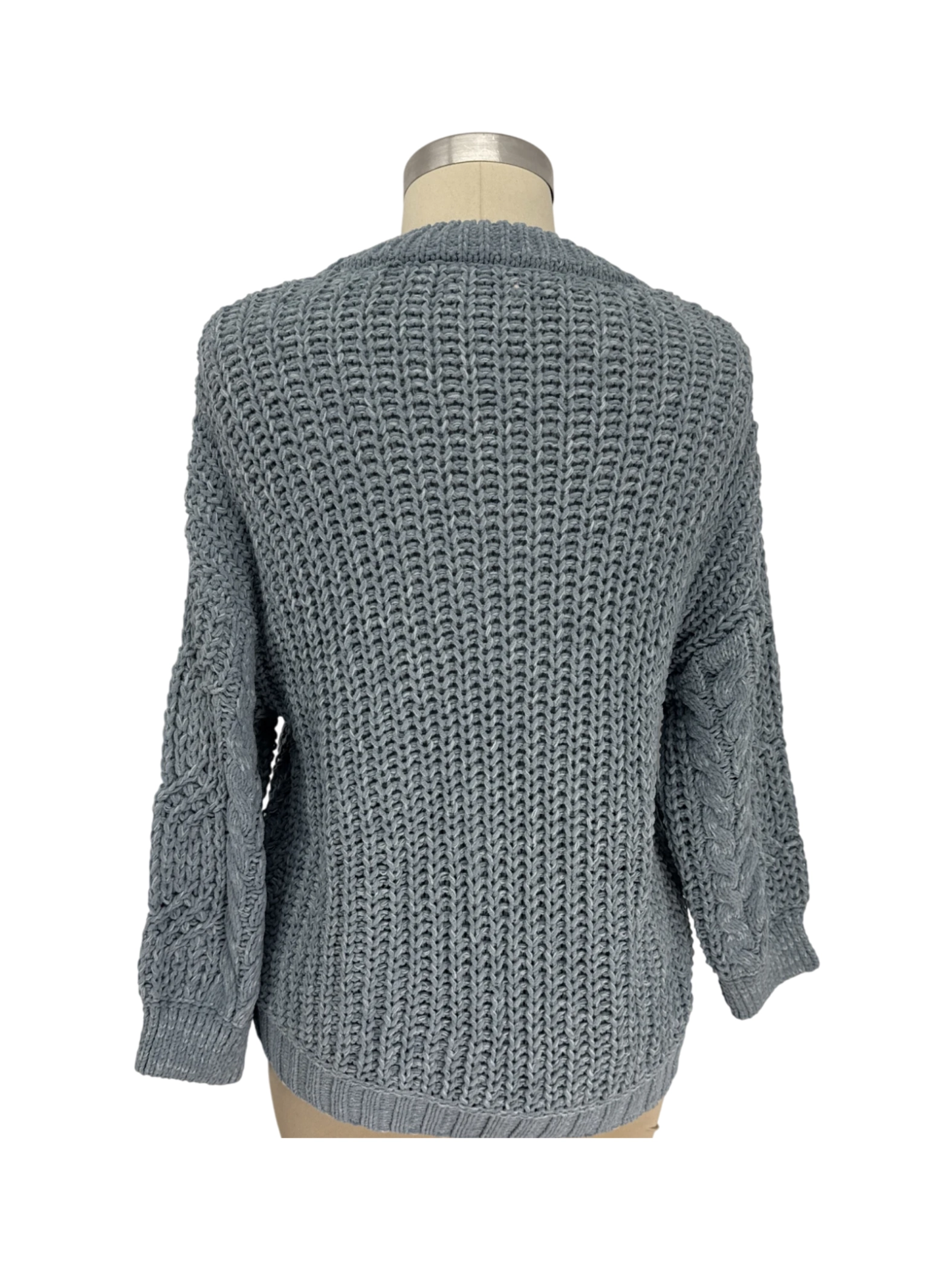 Cozy up in this pre-owned SO cable knit sweater. This stylish sweater is perfect for those chilly days. The soft, knit fabric ensures comfort and warmth. This versatile sweater can be dressed up or down, making it a great addition to any wardrobe. Excellent pre-owned condition.