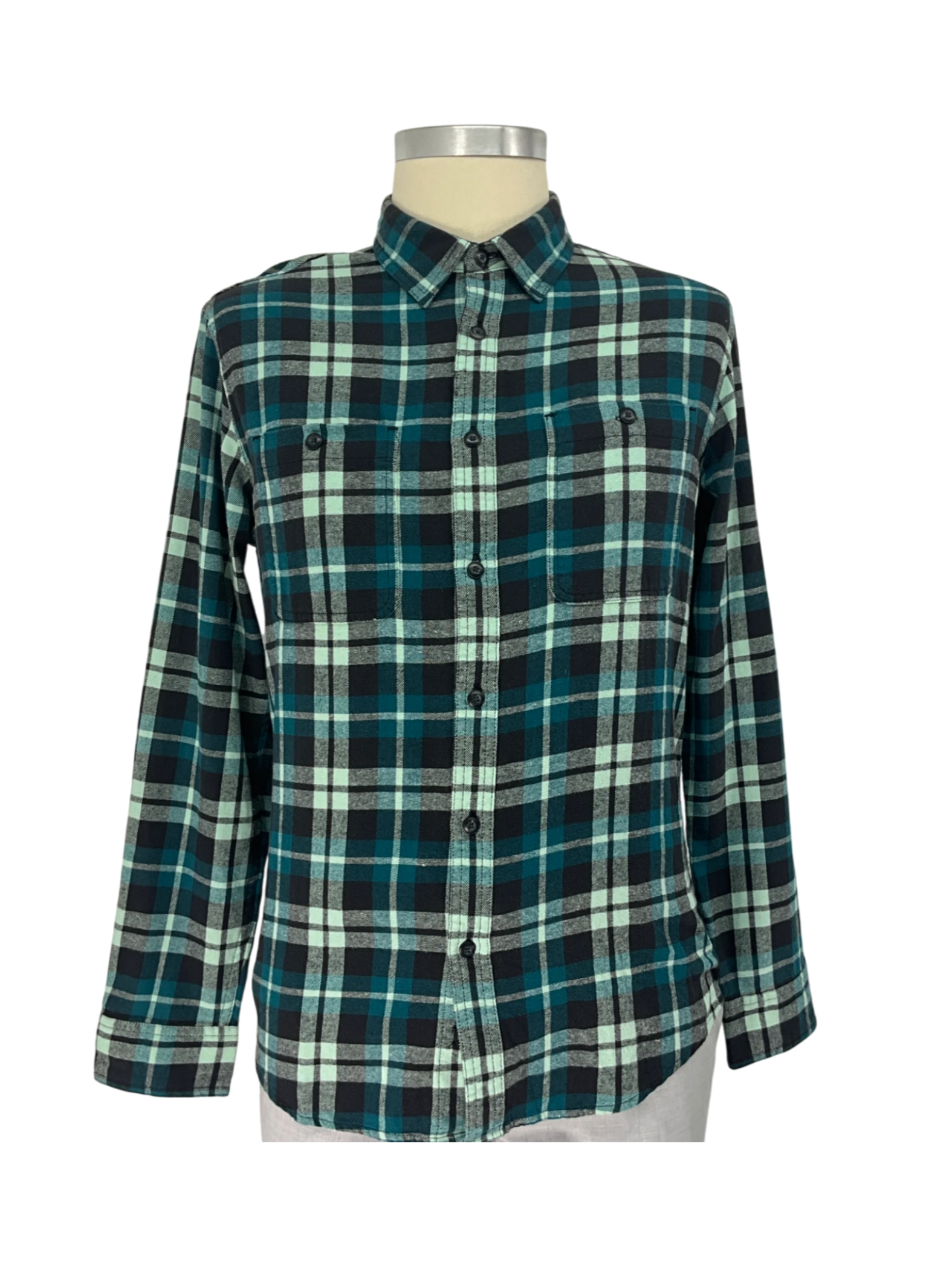 Men's teal and black medium long sleeve button-up shirt in size medium.