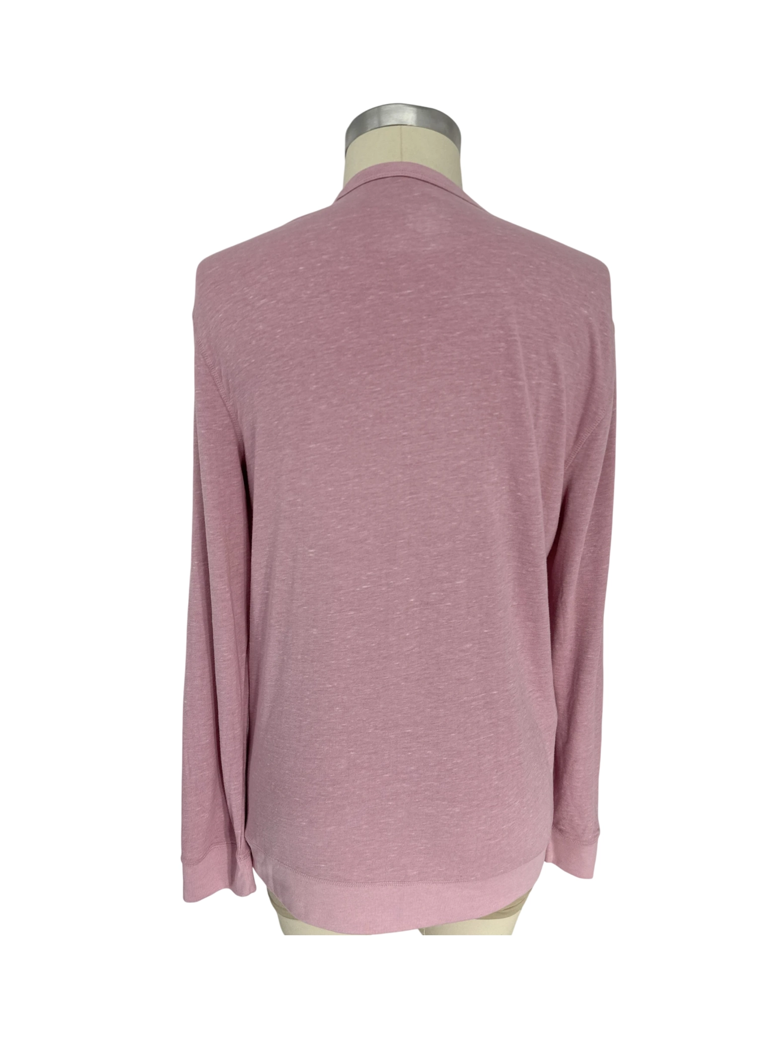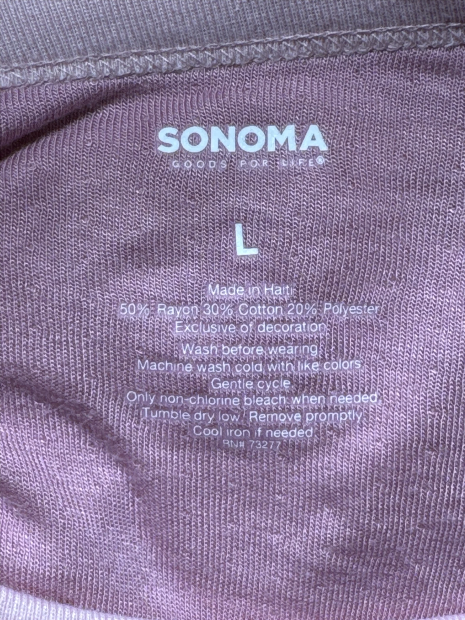 This pre-owned SONOMA crewneck t-shirt is a comfortable and versatile addition to any wardrobe. This women's top comes in a soft pink color and features long sleeves and a classic crew neck. Made with a blend of rayon, cotton, and polyester, it offers a comfortable fit. It's perfect for layering or wearing on its own during the transitional seasons. A great choice for casual wear, providing both style and comfort.