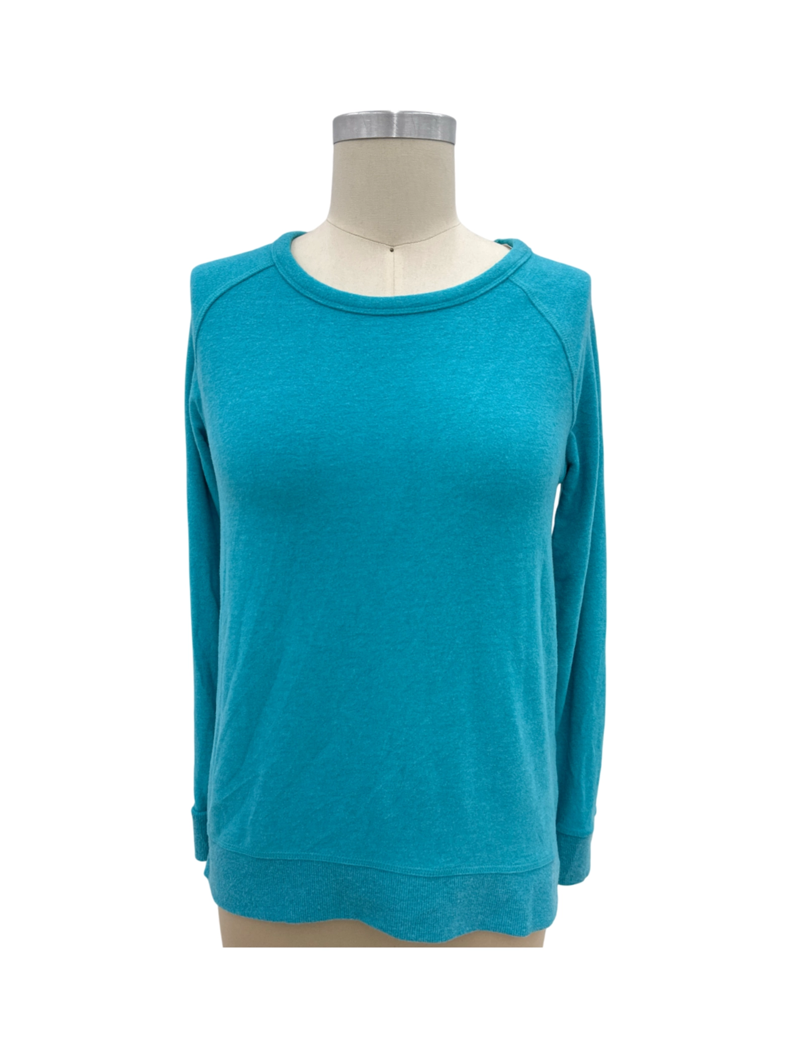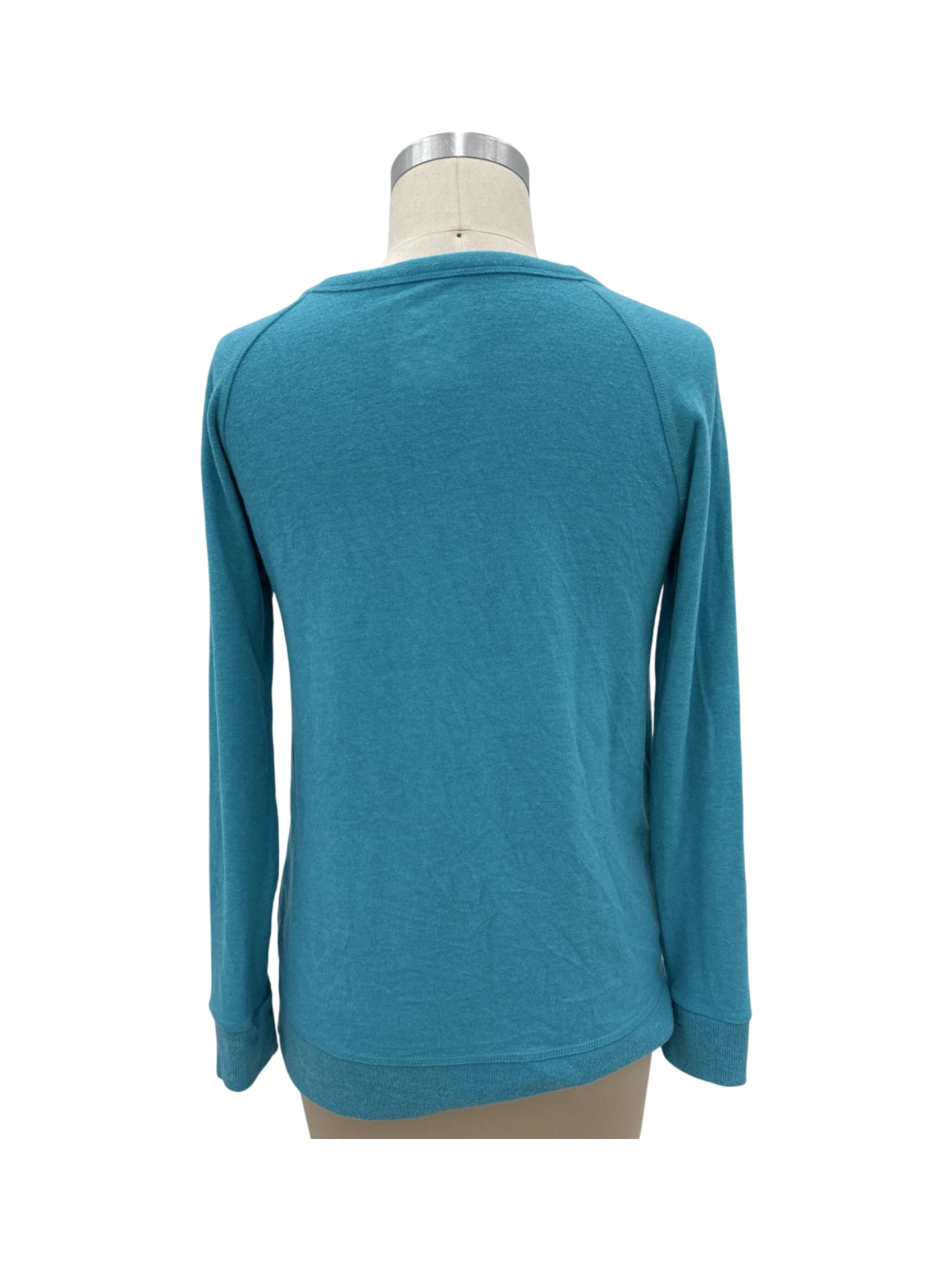 This pre-owned Sonoma long-sleeve tee is a comfortable and stylish addition to your wardrobe. Crafted from a soft blend of rayon, polyester, and spandex, this top offers a relaxed fit and a flattering silhouette. The teal color and classic design make it a versatile piece for everyday wear. A preloved item that offers both comfort and style.