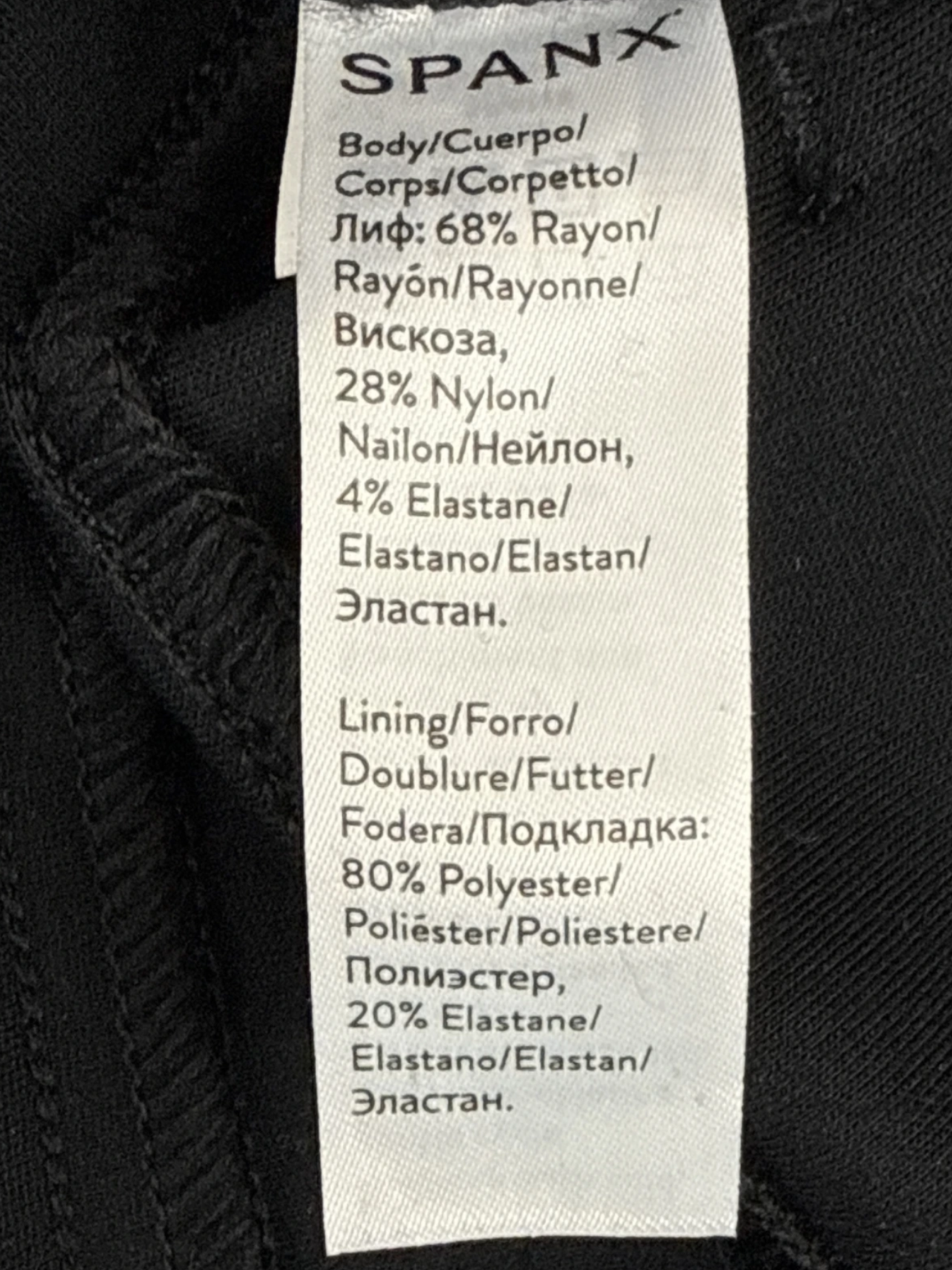 These pre-owned SPANX leggings offer a sleek, comfortable fit. The black color and skinny leg cut make them a versatile wardrobe staple. Made from a blend of rayon, nylon, elastane and polyester, these leggings offer both stretch and support. Perfect for everyday wear, these leggings provide a flattering silhouette and are designed for all seasons.