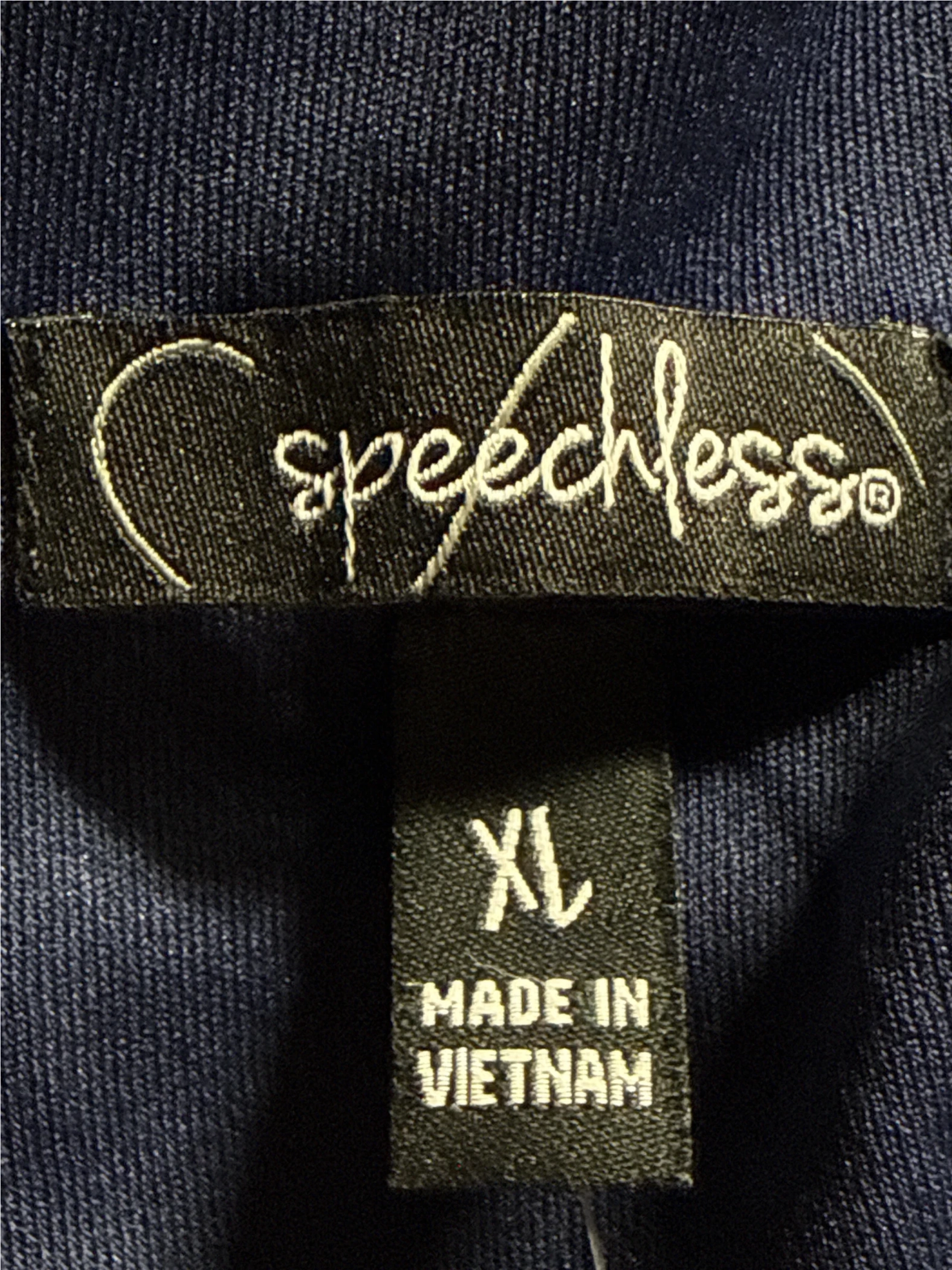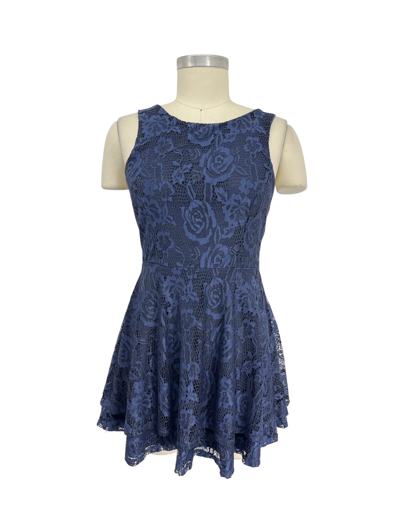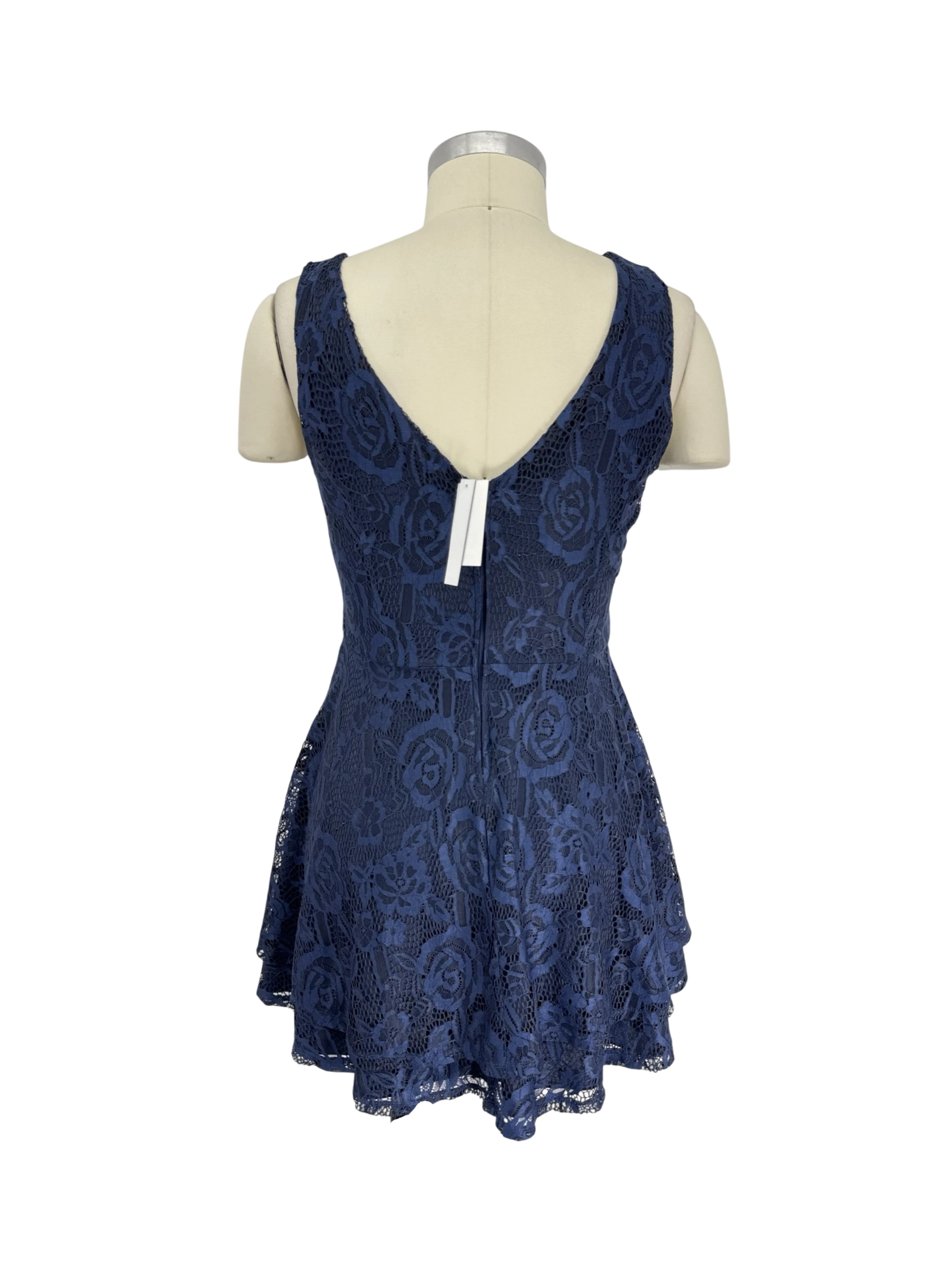 Embrace elegance with this pre-owned Speechless dress. It showcases a navy blue floral lace design, perfect for summer events. Featuring a flattering A-line silhouette, it combines comfort and style. Crafted from a blend of polyester and spandex, this dress offers a comfortable fit. Ideal for cocktail parties, casual outings, or any occasion where you want to make a statement. Available in XL, this dress is a perfect addition to any wardrobe.