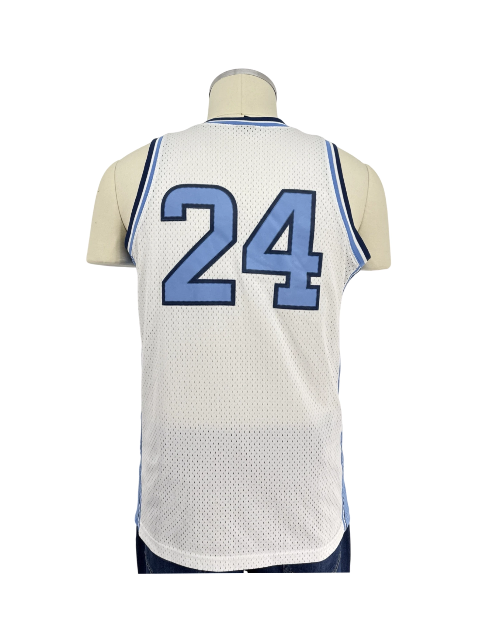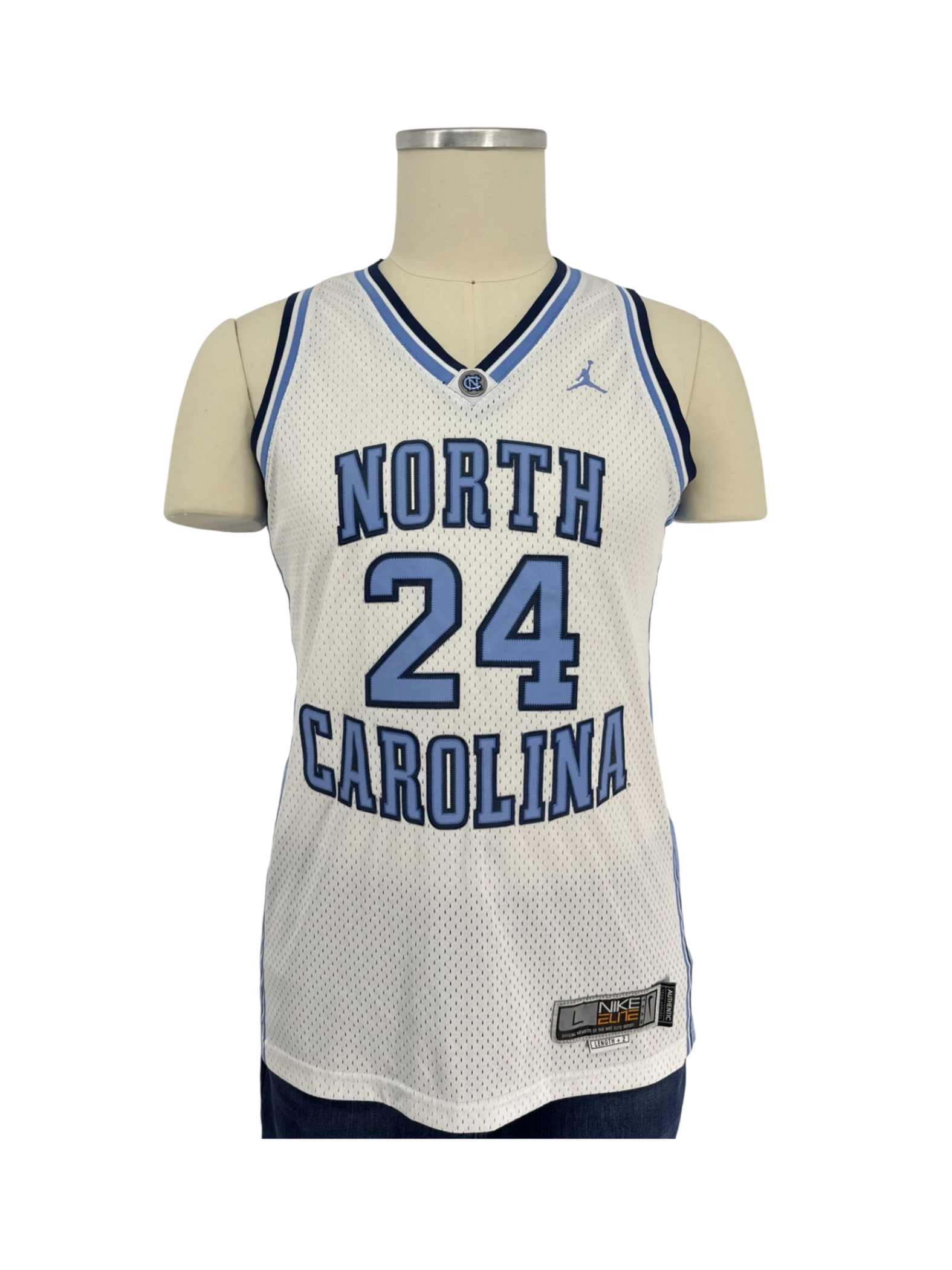 Show your Tar Heels pride with this authentic, pre-owned University of North Carolina basketball jersey. Featuring the iconic '24' and UNC branding, this Nike jersey is made from breathable polyester, perfect for game day or casual wear. In great condition, this jersey is a must-have for any UNC fan or collector. A classic piece of sports memorabilia. Great for showing off your team spirit!