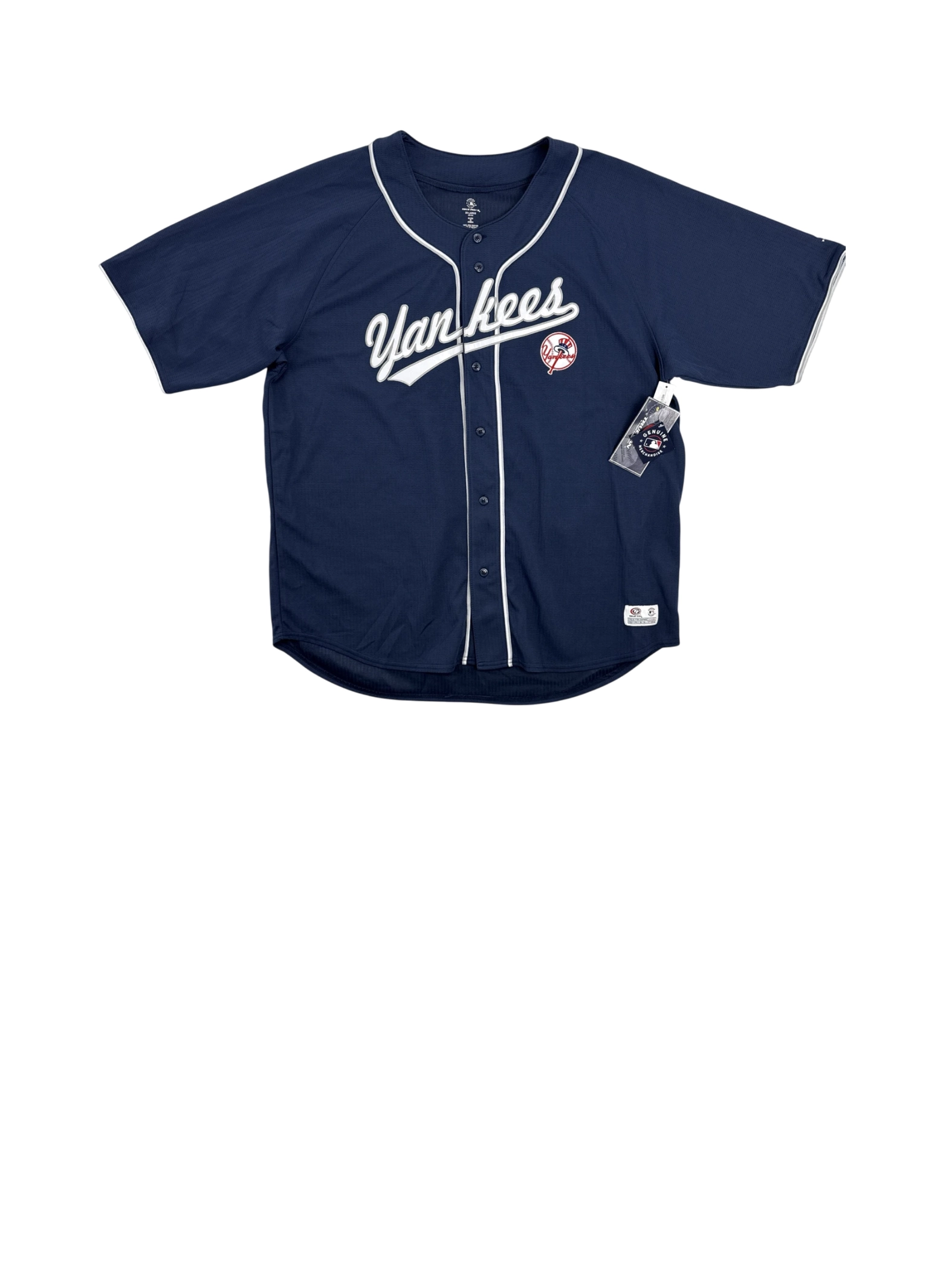 Show your love for the New York Yankees with this authentic, pre-owned True Fan jersey. This jersey features the team's iconic colors and logo, perfect for any fan. The jersey is made from durable, breathable polyester and is in great condition. It's ideal for game day, casual wear, or adding to your sports memorabilia collection. Get ready to cheer on the Yankees in style with this must-have piece of fan gear. - Show your New York Yankees pride with this authentic, pre-owned True Fan MLB jersey. Featuring the iconic Yankees logo and team colors, this jersey is perfect for game day or everyday wear. Made from durable polyester, it ensures comfort and longevity. A must-have for any baseball fan, this jersey lets you support your team in style. Get yours today and cheer on the Yankees!