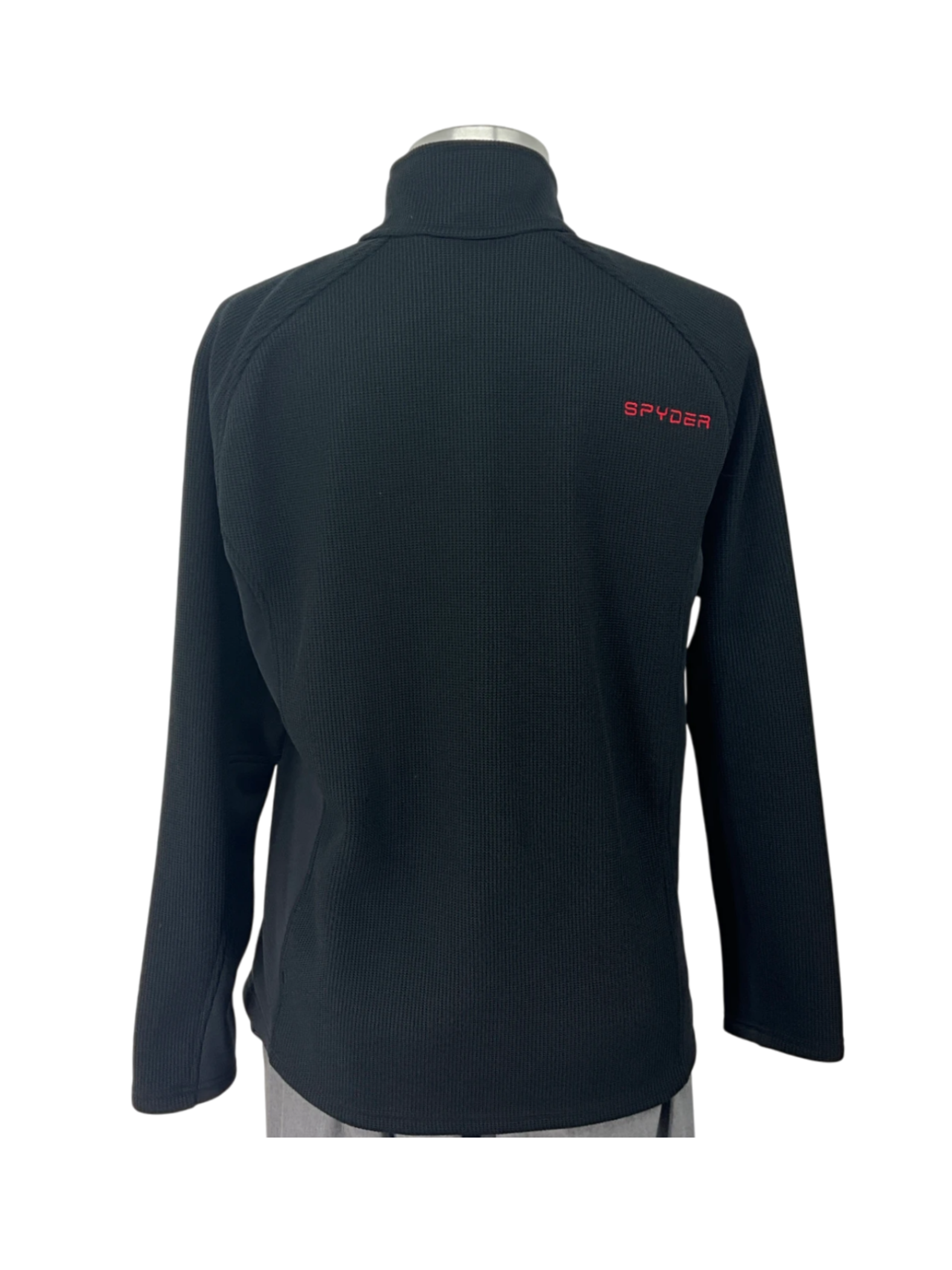 Mens Black Pullover with a Red Quarter Zip and Long Sleeved From Spyder, Size XL.