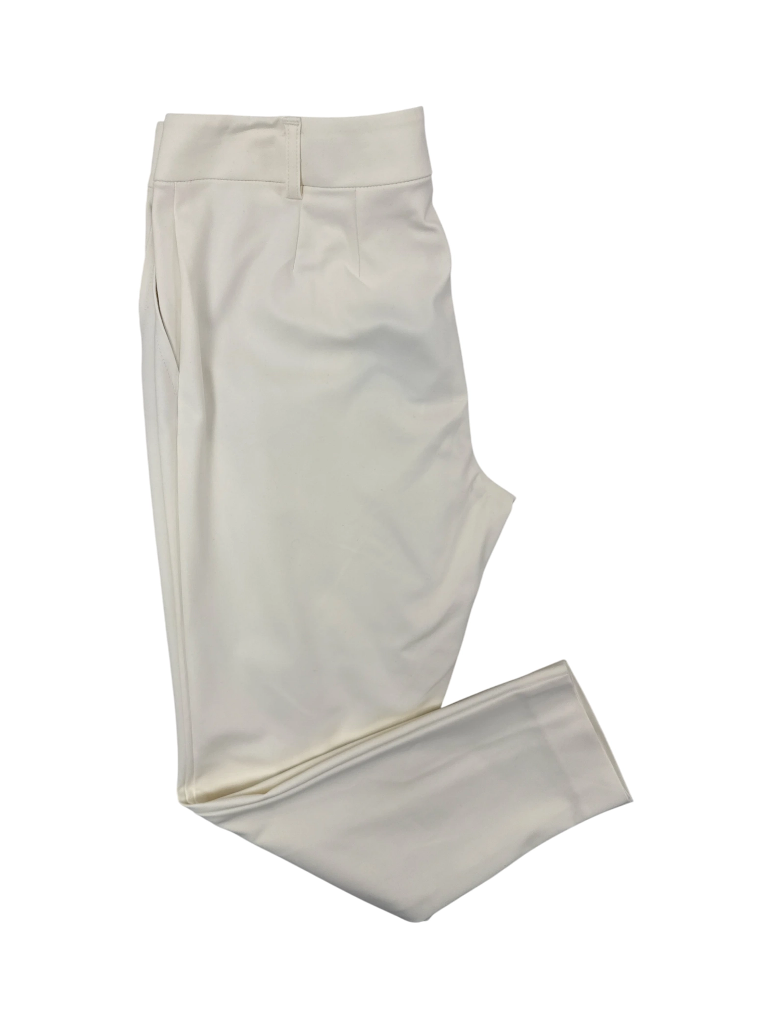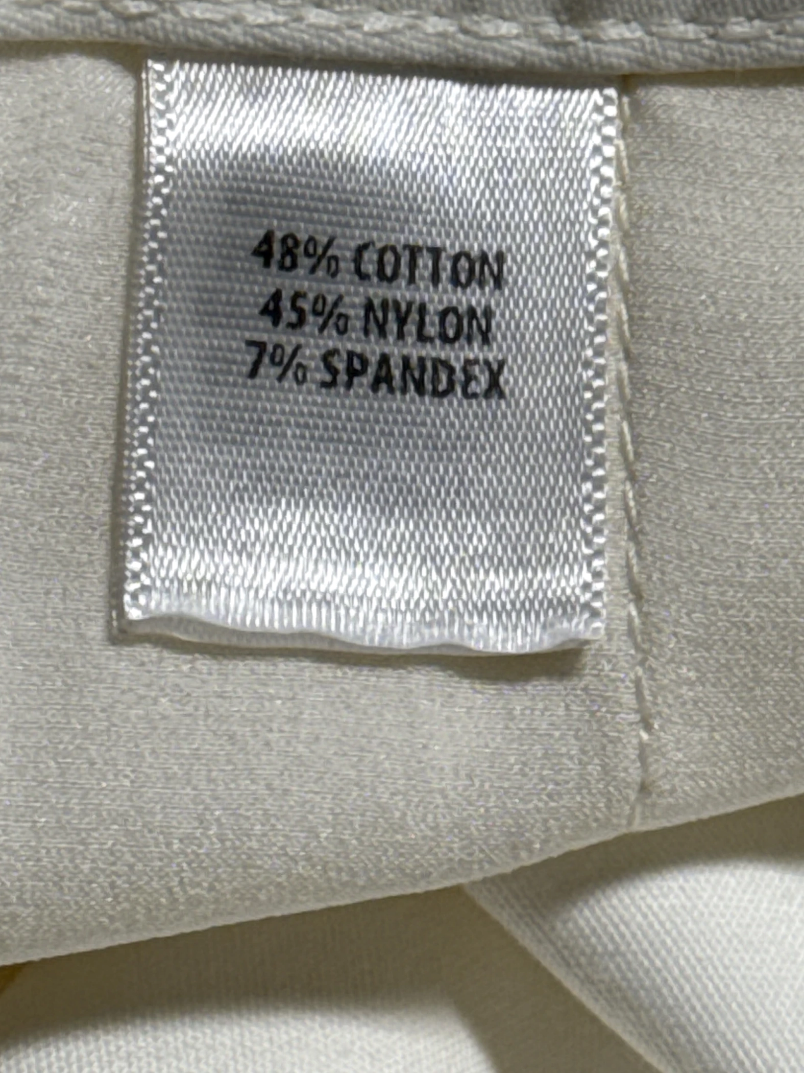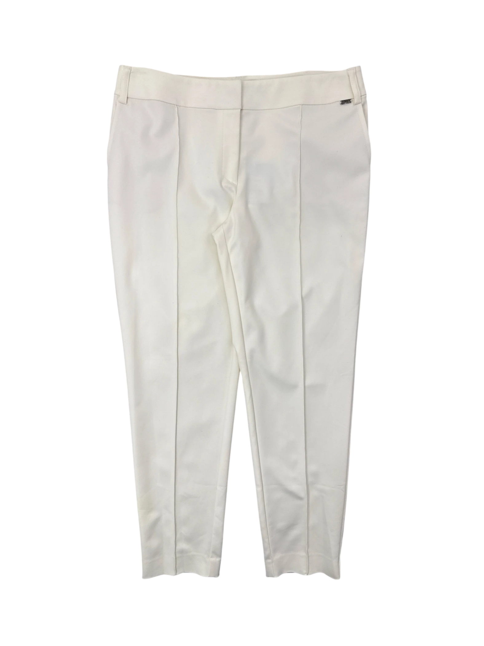 These pre-owned St. John dress pants are a timeless addition to any wardrobe. Crafted in a comfortable cotton blend, these pants offer a flattering straight-leg fit. The classic white color makes them versatile for various occasions, from the office to casual outings. These pants are a perfect blend of style and comfort, ensuring a polished look. They are in excellent condition and ready to wear.