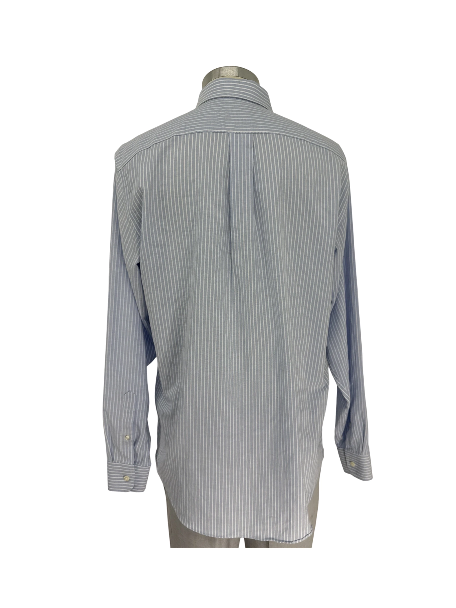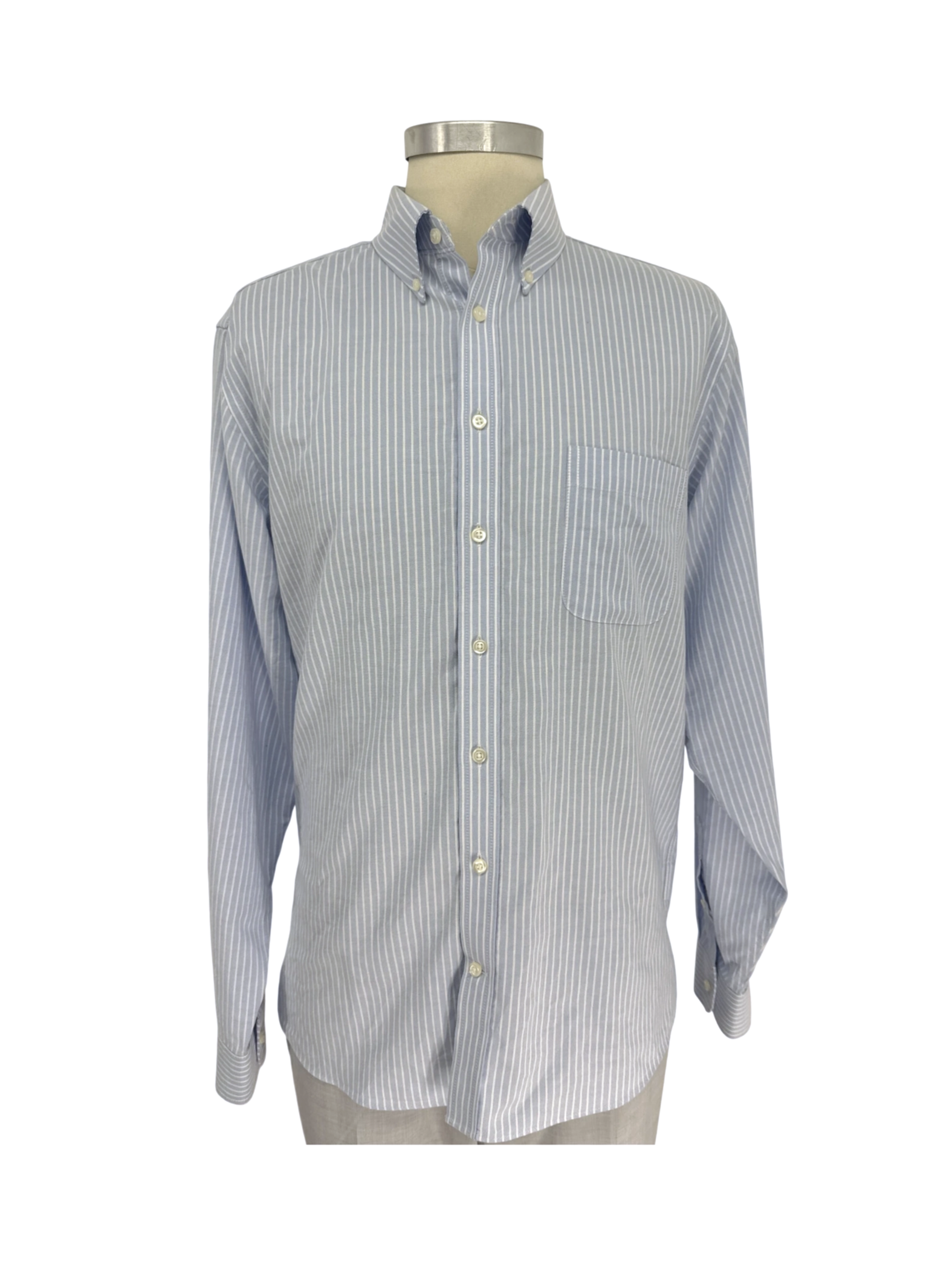 Elevate your wardrobe with this stylish, pre-owned Stafford long-sleeve shirt. Crafted with a comfortable blend of cotton and polyester, this shirt features a classic blue and white striped pattern, a button-up closure, and a traditional collar. The regular fit and wrinkle-free oxford fabric make it a versatile choice for any occasion. Perfect for both casual and semi-formal settings, this pre-loved shirt is a great addition to any modern man's collection. Get a timeless look with this Stafford shirt!