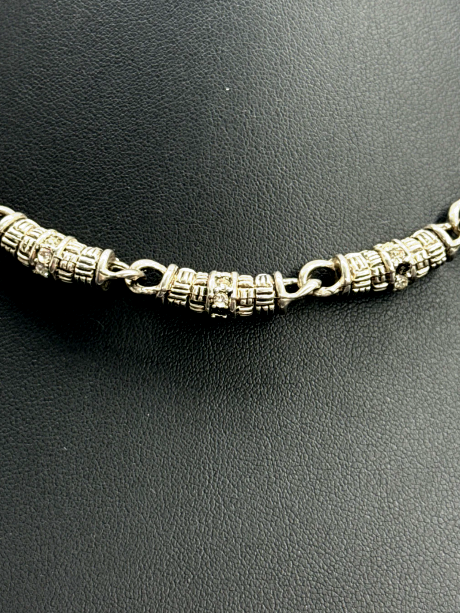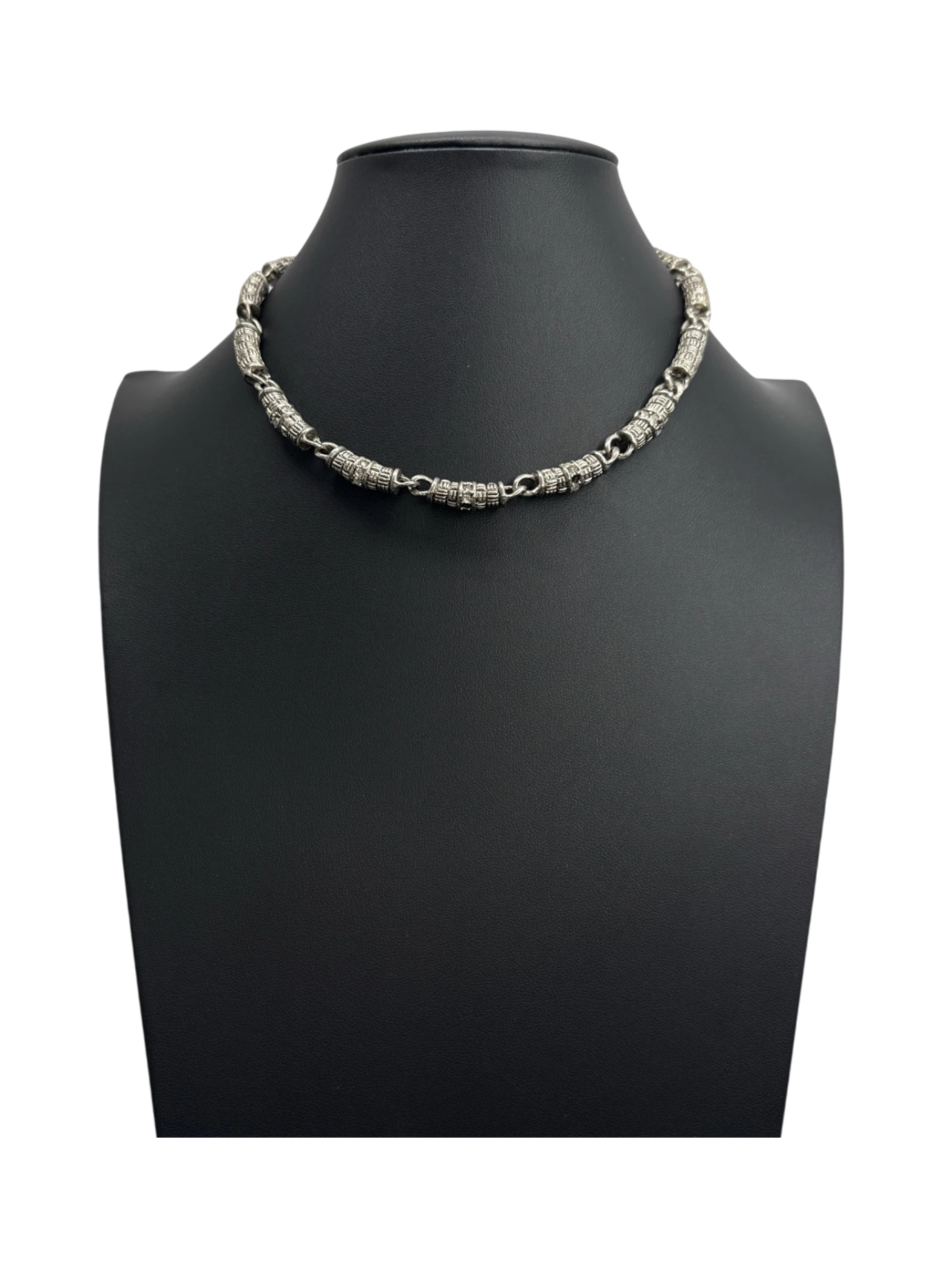 Women's Stainless Steel Byzantine 15.5in Necklace Featuring Barrel-Shaped Beads and a Lobster Clasp.
