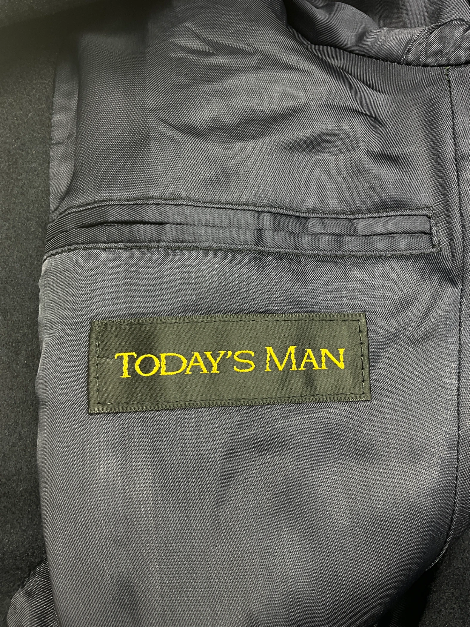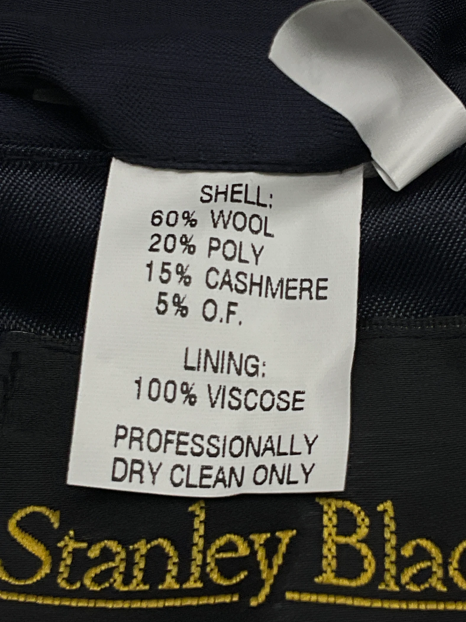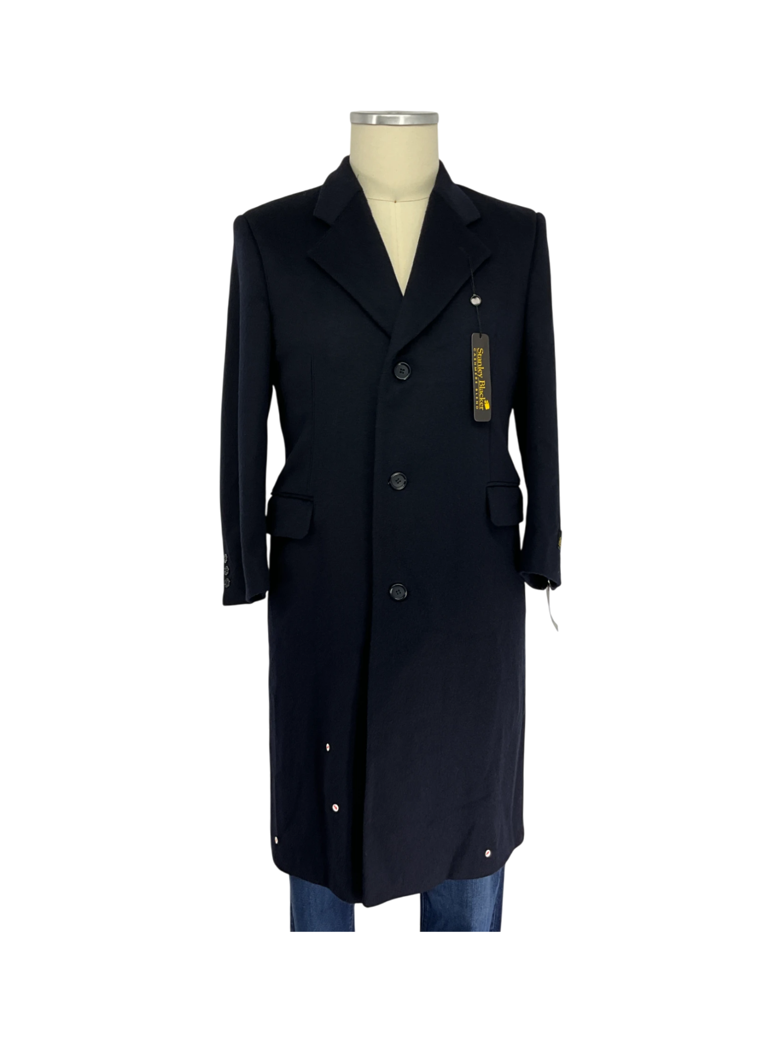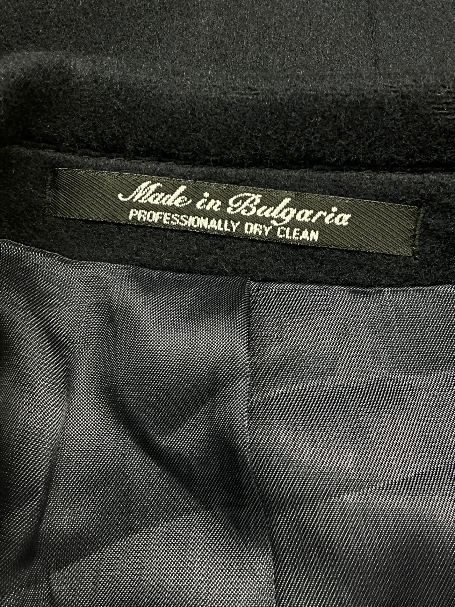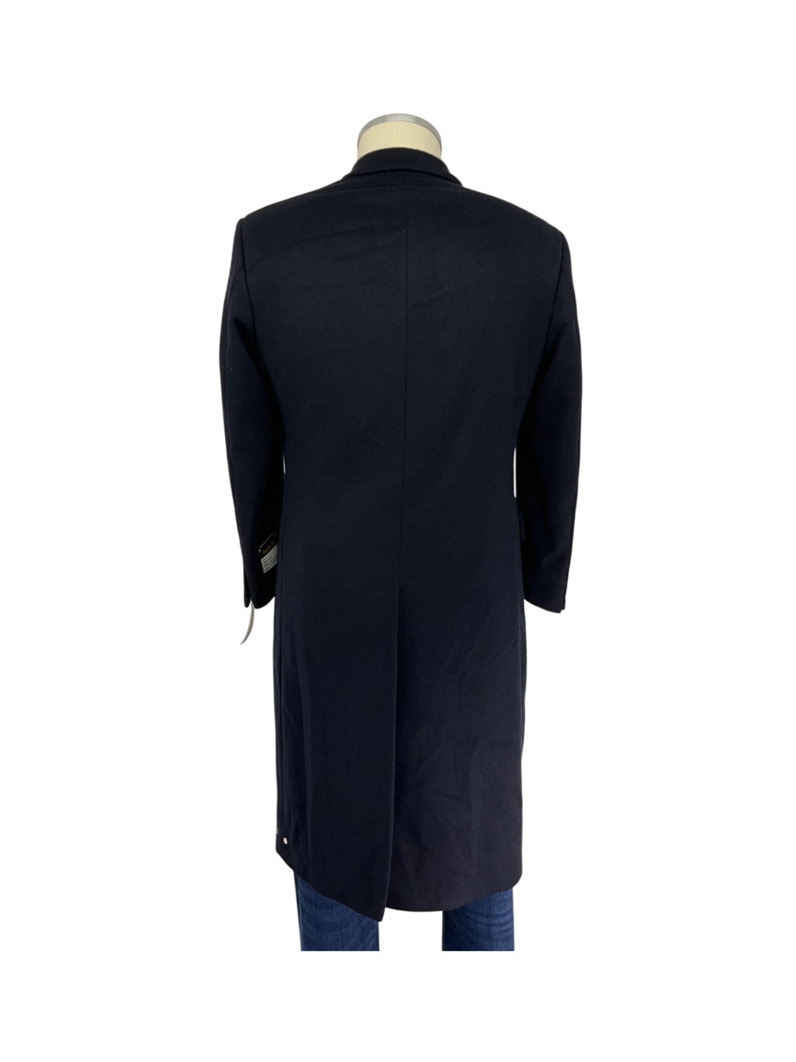 Women's navy coat with 3-button closure, long sleeves, and V-neck, Size 40.