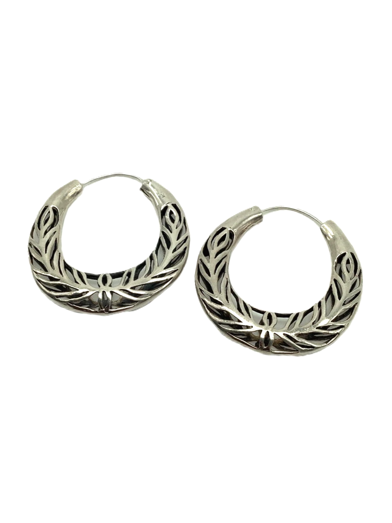 Vintage Sterling Silver Filigree Cutout Crescent Hoop Earrings 1.25”