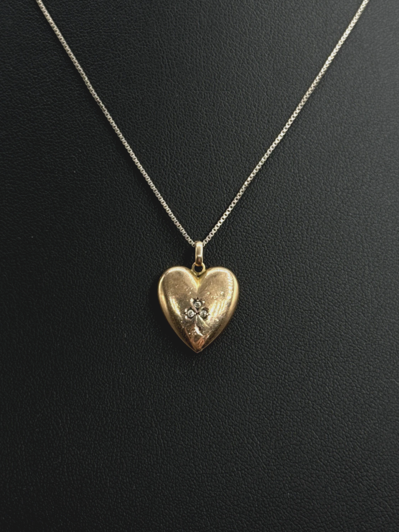 Sterling silver heart-shaped diamond pendant necklace, 17 1/2 inches long.