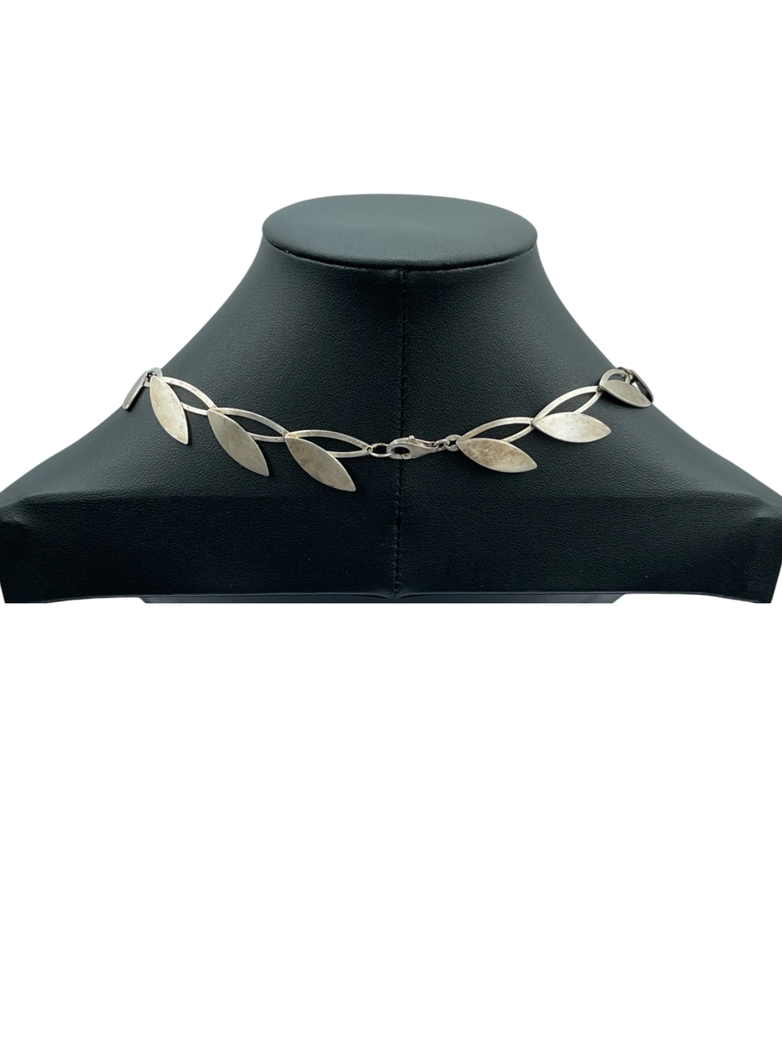 Sterling silver .925 necklace with open leaves design, 17 inches long.