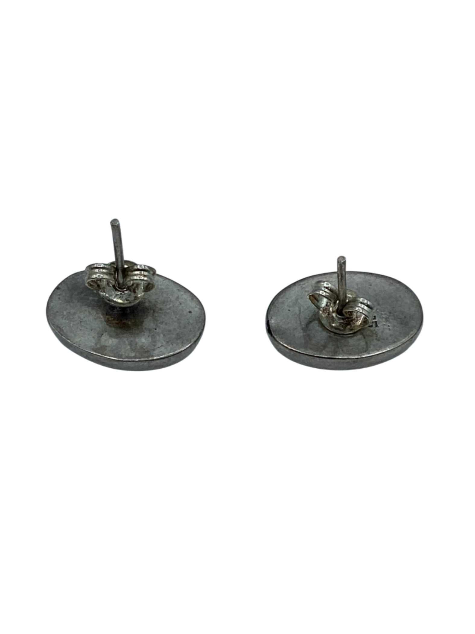 These round stud earrings have iridescent abalone shell inlays set in polished 925 sterling silver. Abalone is known for its vibrant colors and is believed to promote emotional healing and a connection to the sea.