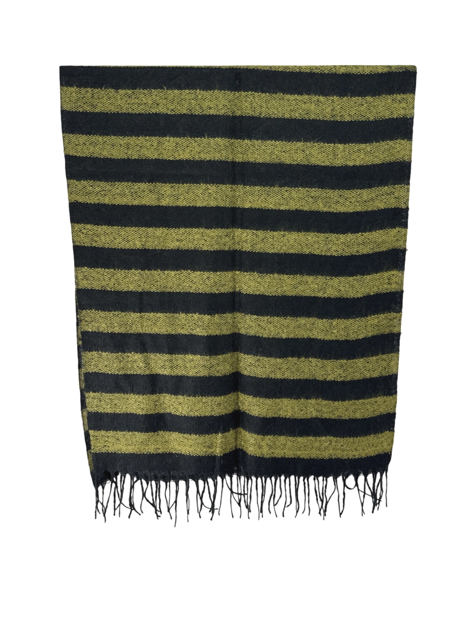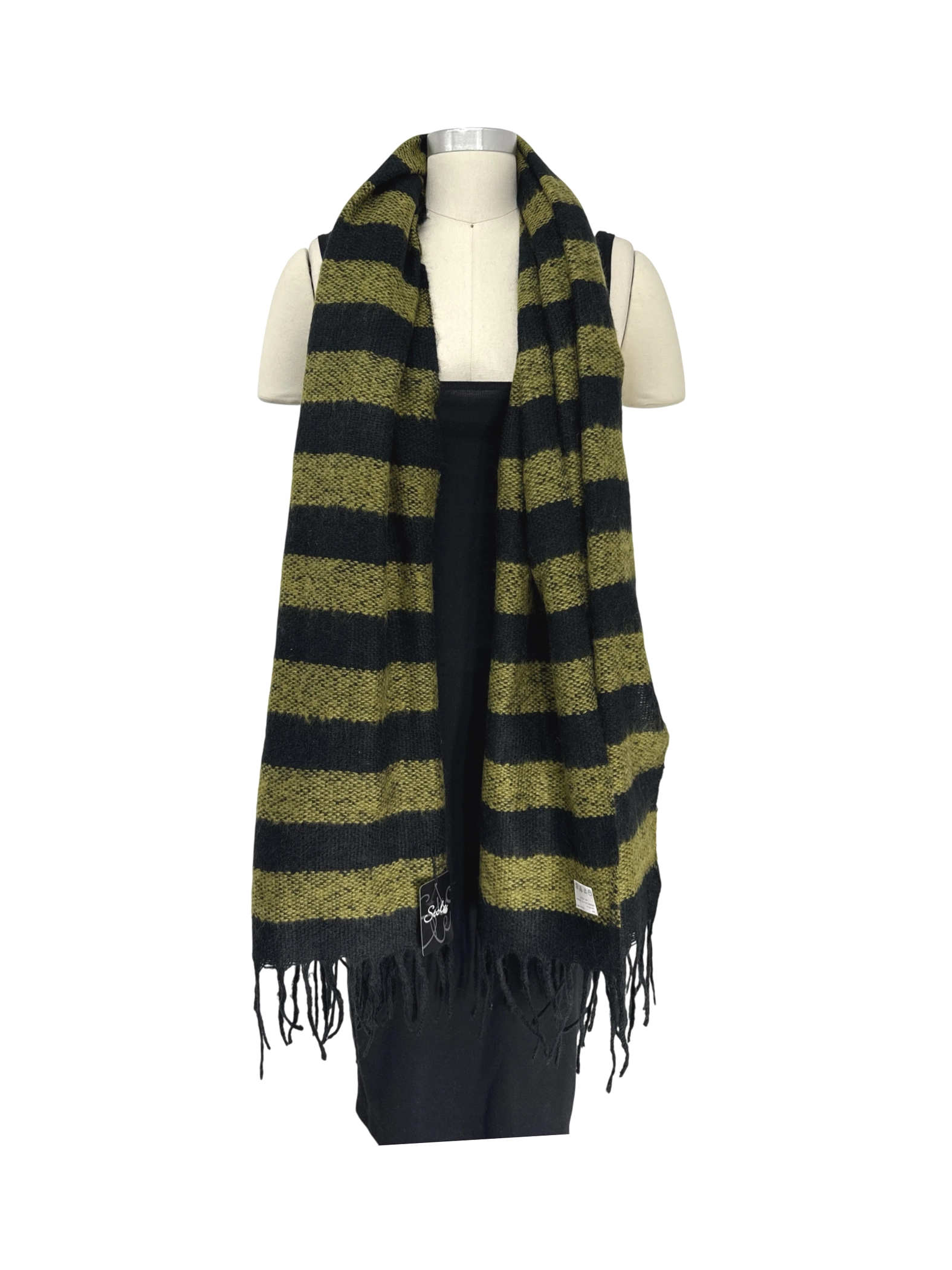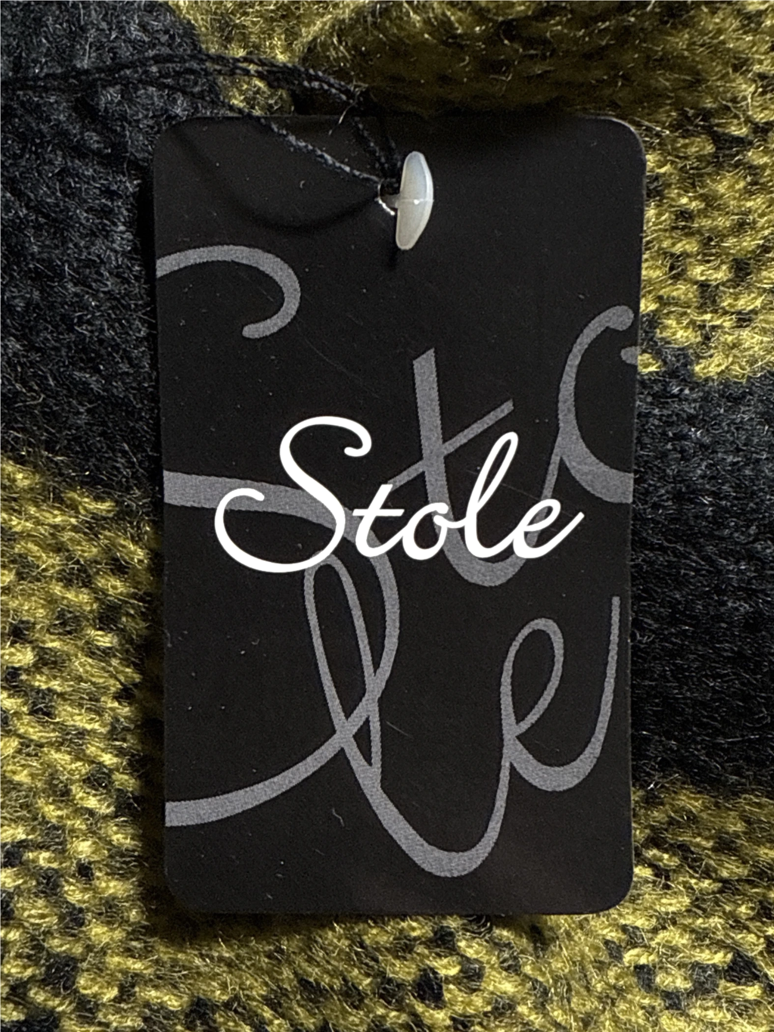 Elevate your winter wardrobe with this stylish Stole scarf. Featuring a chic black and olive green striped design, this scarf is the perfect accessory to keep you warm and fashionable. Crafted from soft acrylic, it offers both comfort and style. The scarf is a one size fits all, making it a versatile addition to any outfit. Perfect for layering, this pre-owned scarf adds a touch of elegance to your cold-weather ensemble.