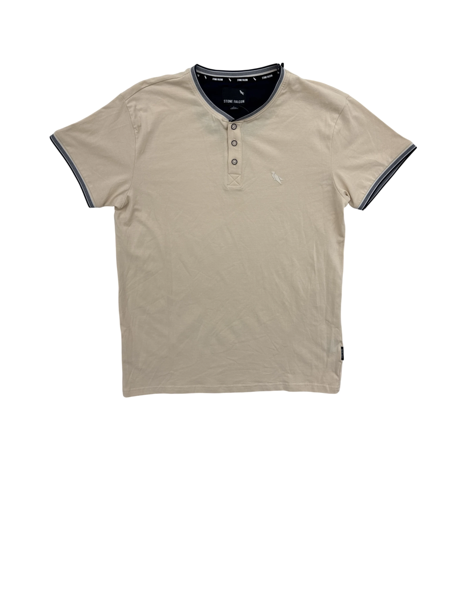 This pre-owned STONE FALCON men's tank top features a stylish V-neck and short sleeves, perfect for a casual, yet refined look. The shirt comes in a beige color with navy blue accents, and a button-up closure adds a touch of sophistication. Crafted from a comfortable cotton blend with a hint of spandex, this tank top ensures all-day comfort. Ideal for spring and summer, this tank top is a versatile addition to any wardrobe, ready to be worn for various occasions.