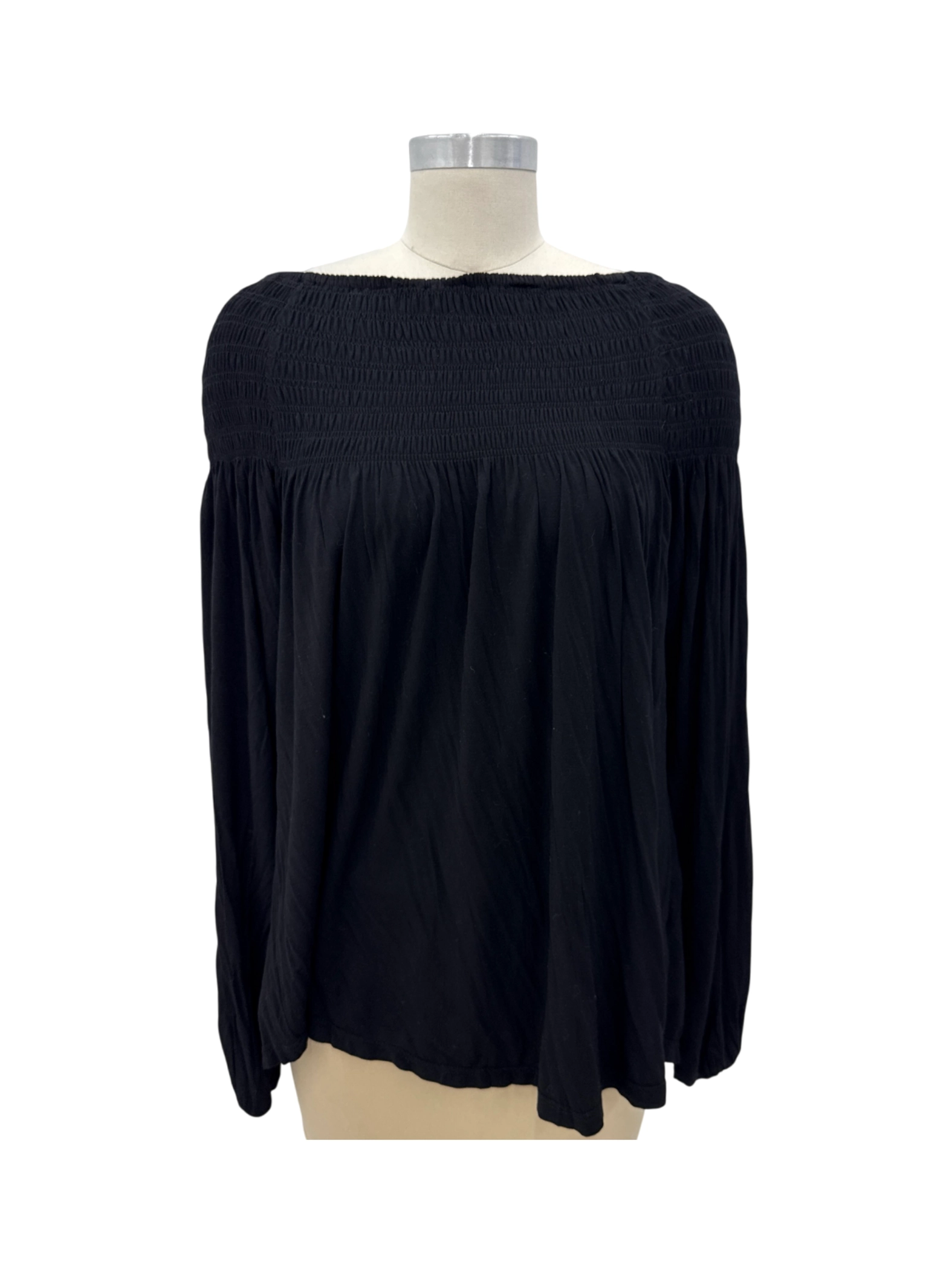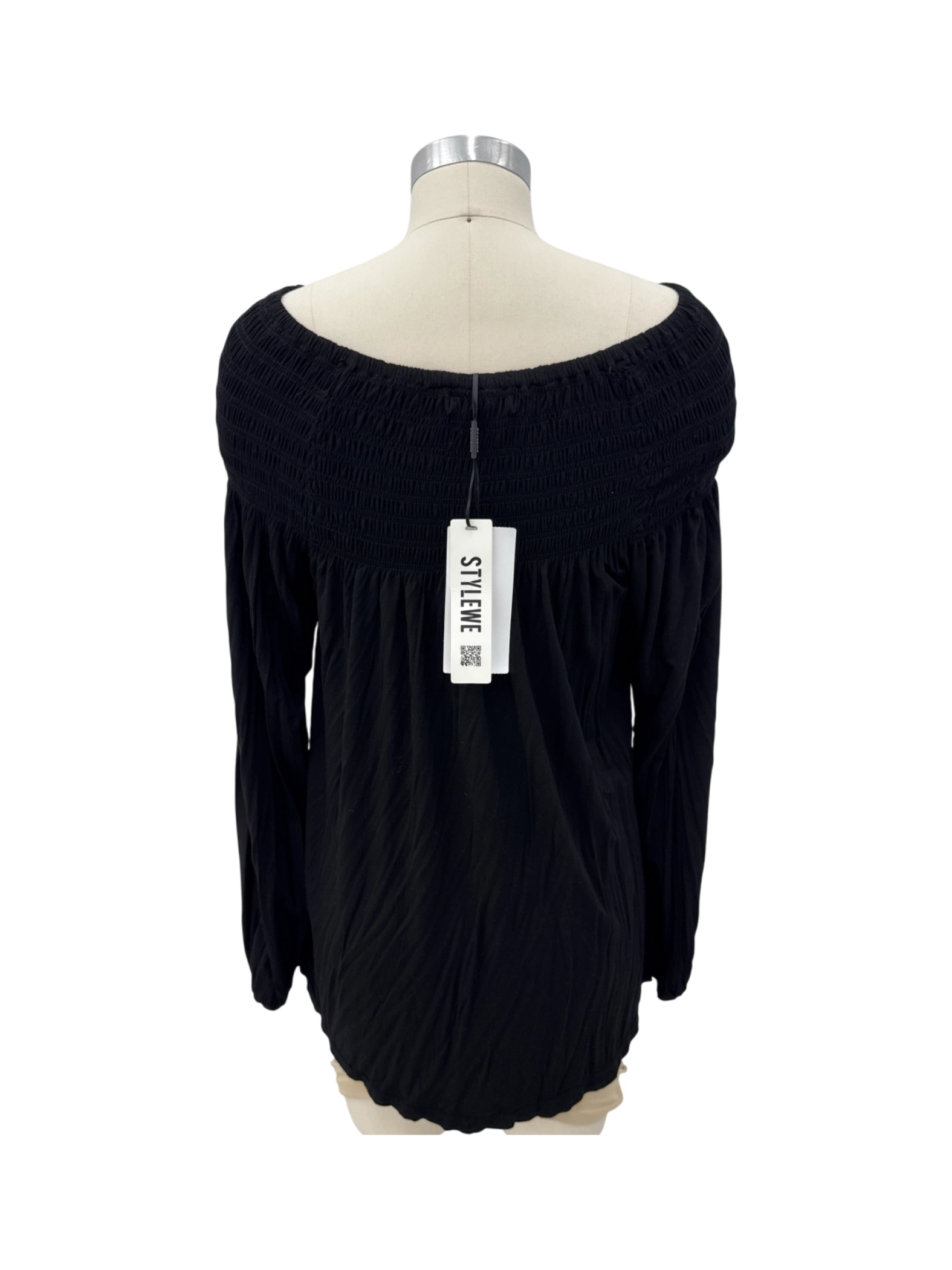 This beautiful black off-the-shoulder blouse from Stylewe is perfect for any occasion. Made from a soft and comfortable blend of modal and elastane, this top features long sleeves and a flattering neckline. The blouse is versatile and can be dressed up or down. A great addition to any wardrobe, perfect for creating stylish outfits. This blouse is a must-have for the fashion-conscious woman looking for a chic and versatile top. The blouse is in great condition and ready to wear.