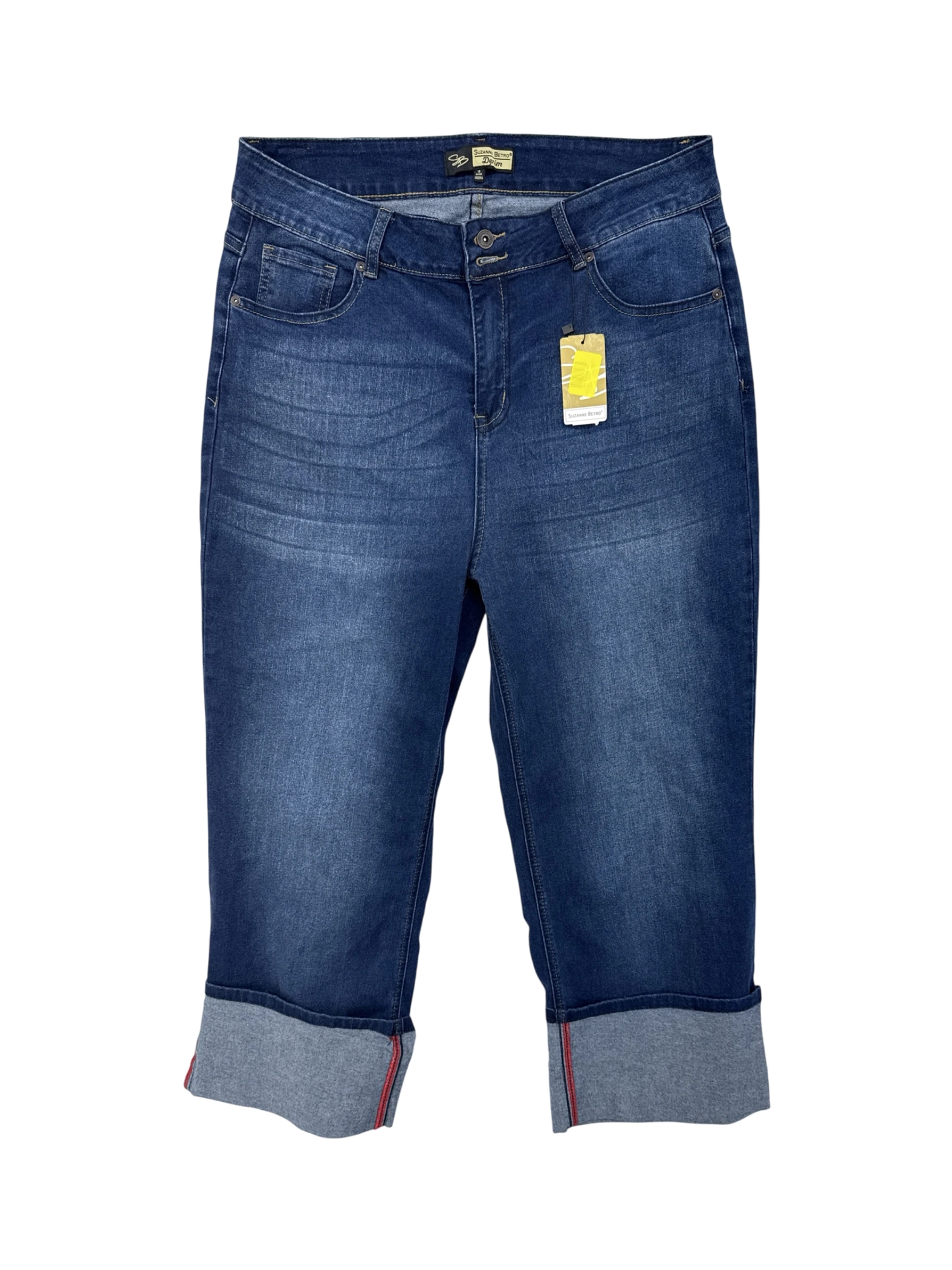These pre-owned Suzann Betro denim jeans are a stylish addition to any wardrobe. Featuring a classic denim wash and a comfortable fit, these capri-length jeans offer versatility for various occasions. Made from a blend of cotton, polyester, and spandex, they provide both durability and stretch. The jeans are in good condition and ready to wear, making them a sustainable and fashionable choice.