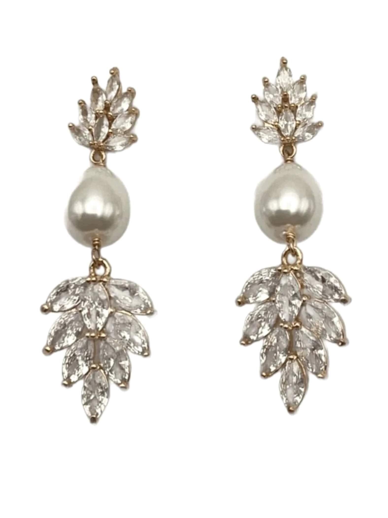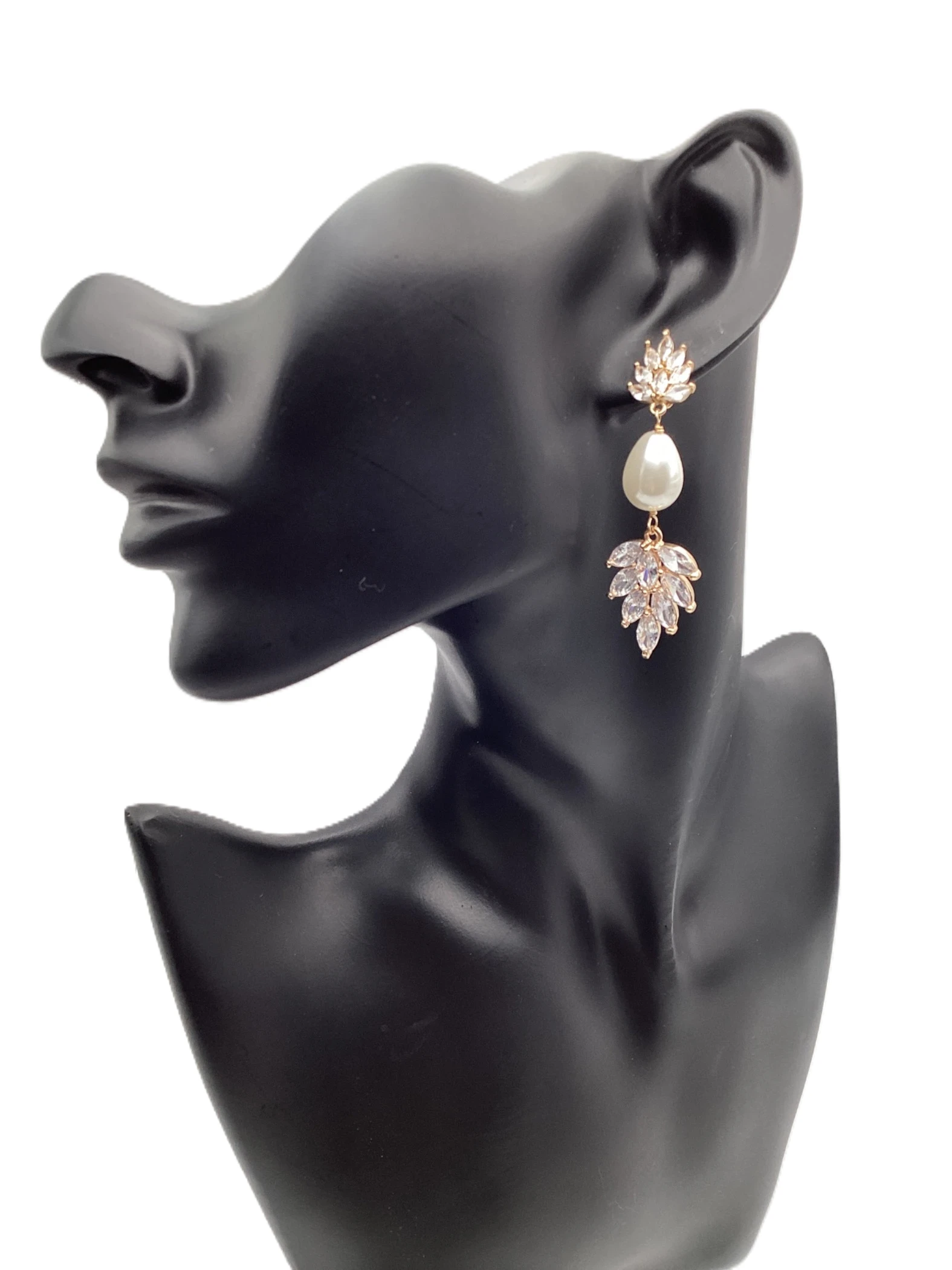 Swarovski pearl CZ drop earrings CZ Baguette stud Swarovski earrings