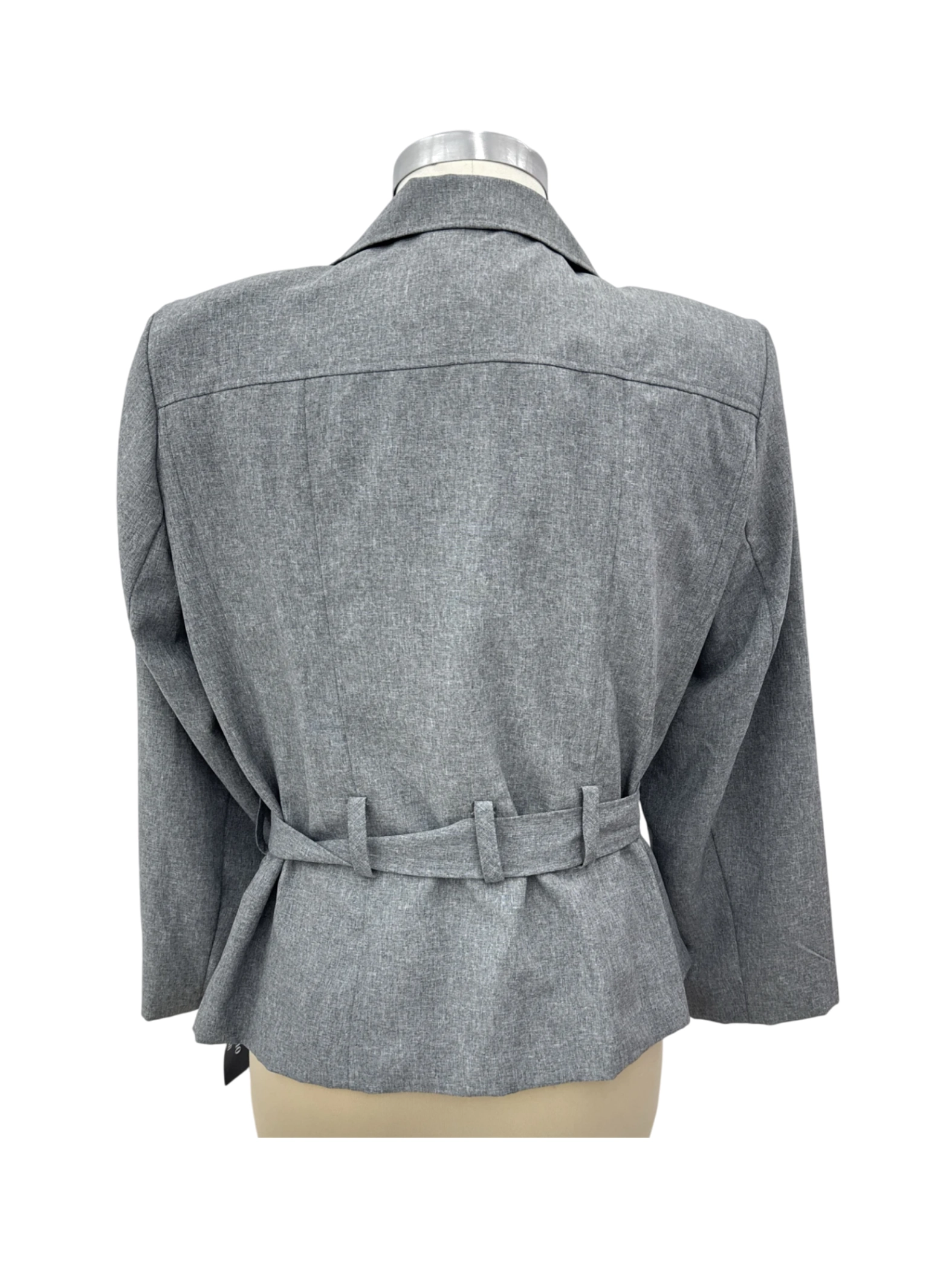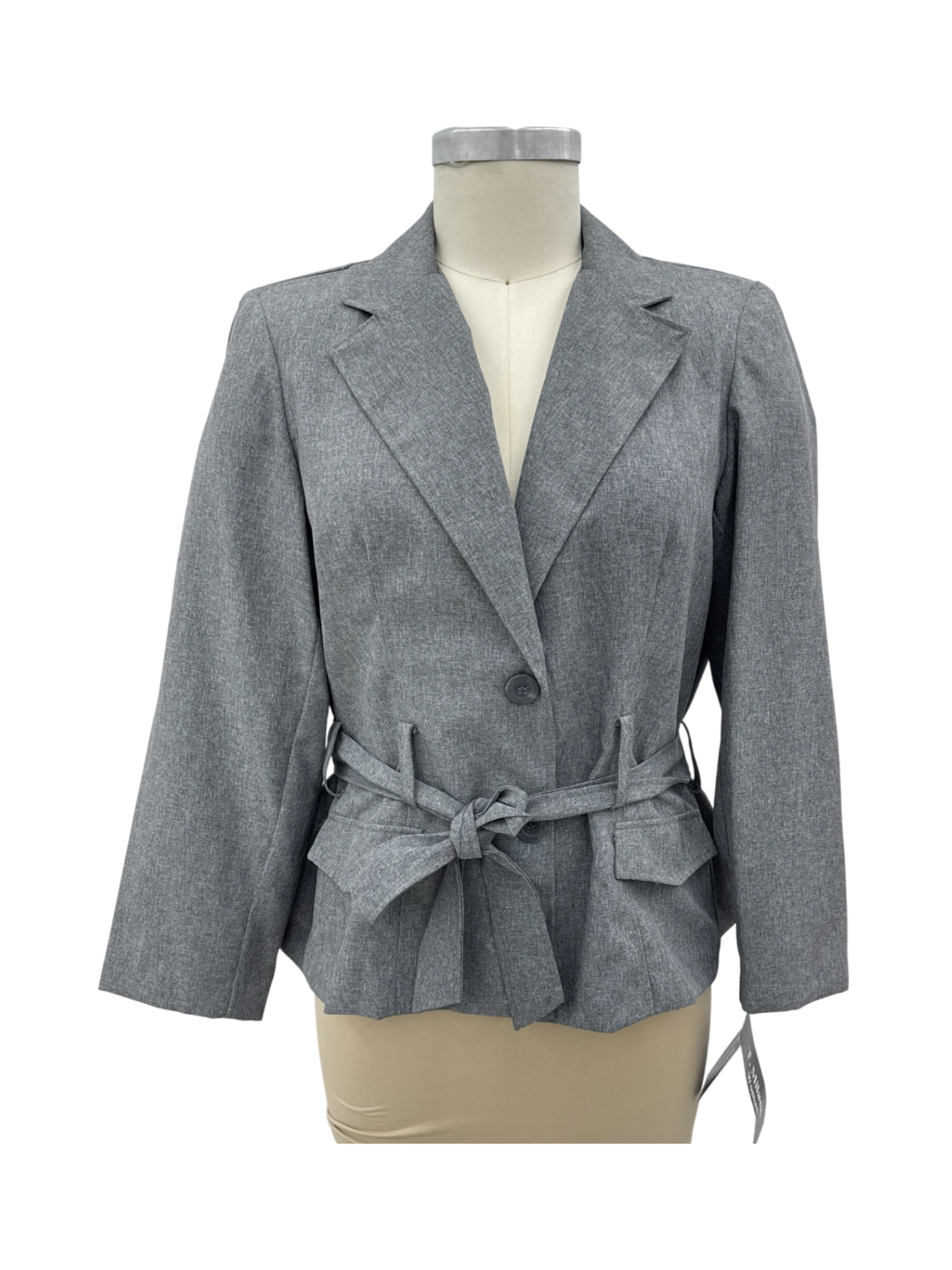 This elegant pre-owned blazer from T. Milano is a timeless addition to any wardrobe. Crafted from 100% polyester, this blazer features a flattering silhouette, a tailored fit, and a stylish belt detail. The neutral gray color makes it a versatile piece suitable for various occasions, from work to evenings out. The blazer's construction ensures comfort and durability, making it an excellent investment. Perfect for Fall, Winter, and Spring.