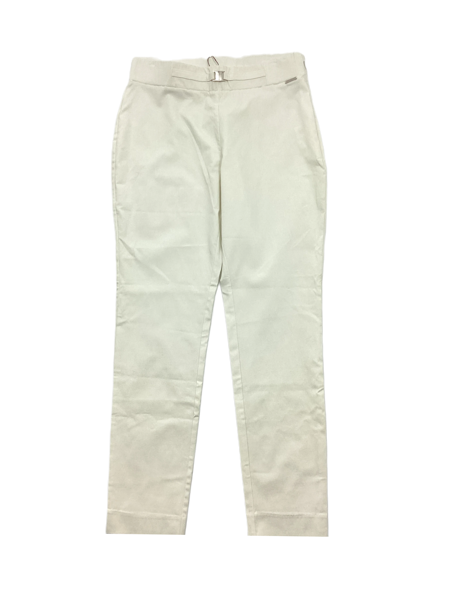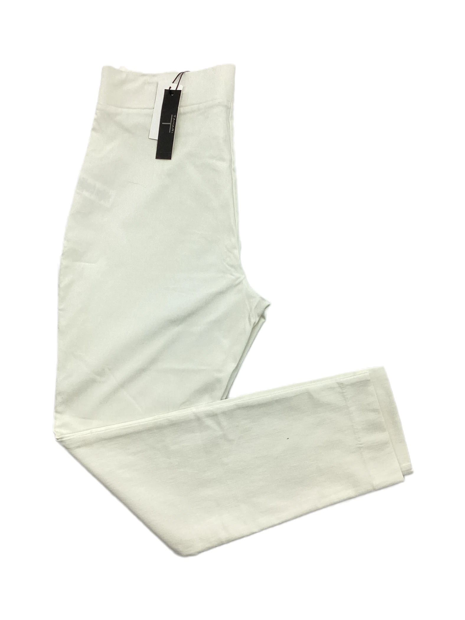 Tahari women's high rise flat front chino pants in white, size medium.