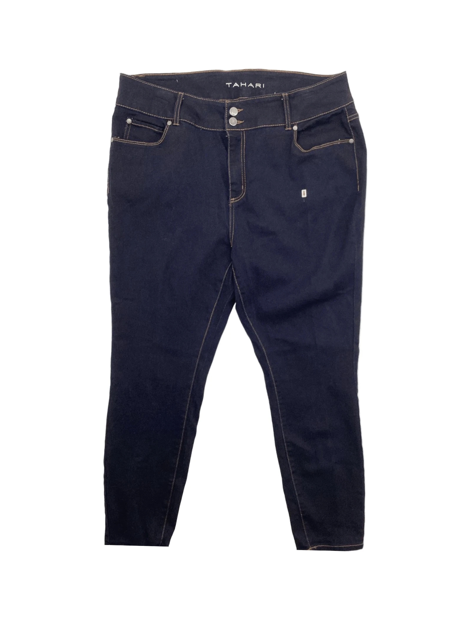 These are blue skinny jeans. The arrow in the photo points to a minor blemish on the fabric. Please see all pictures for more details.