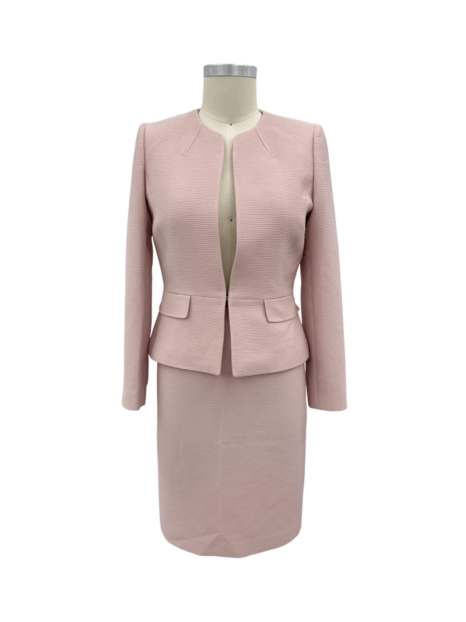 Elevate your wardrobe with this stylish pre-owned Tahari women's set, perfect for the modern professional. This two-piece set features a sophisticated blush pink color, ideal for spring and fall. Crafted from a blend of polyester and elastane, this set offers both comfort and durability. The set includes a tailored jacket and a matching skirt, creating a polished and elegant look. This Tahari set is perfect for office wear or special occasions, providing a timeless and versatile addition to your collection.