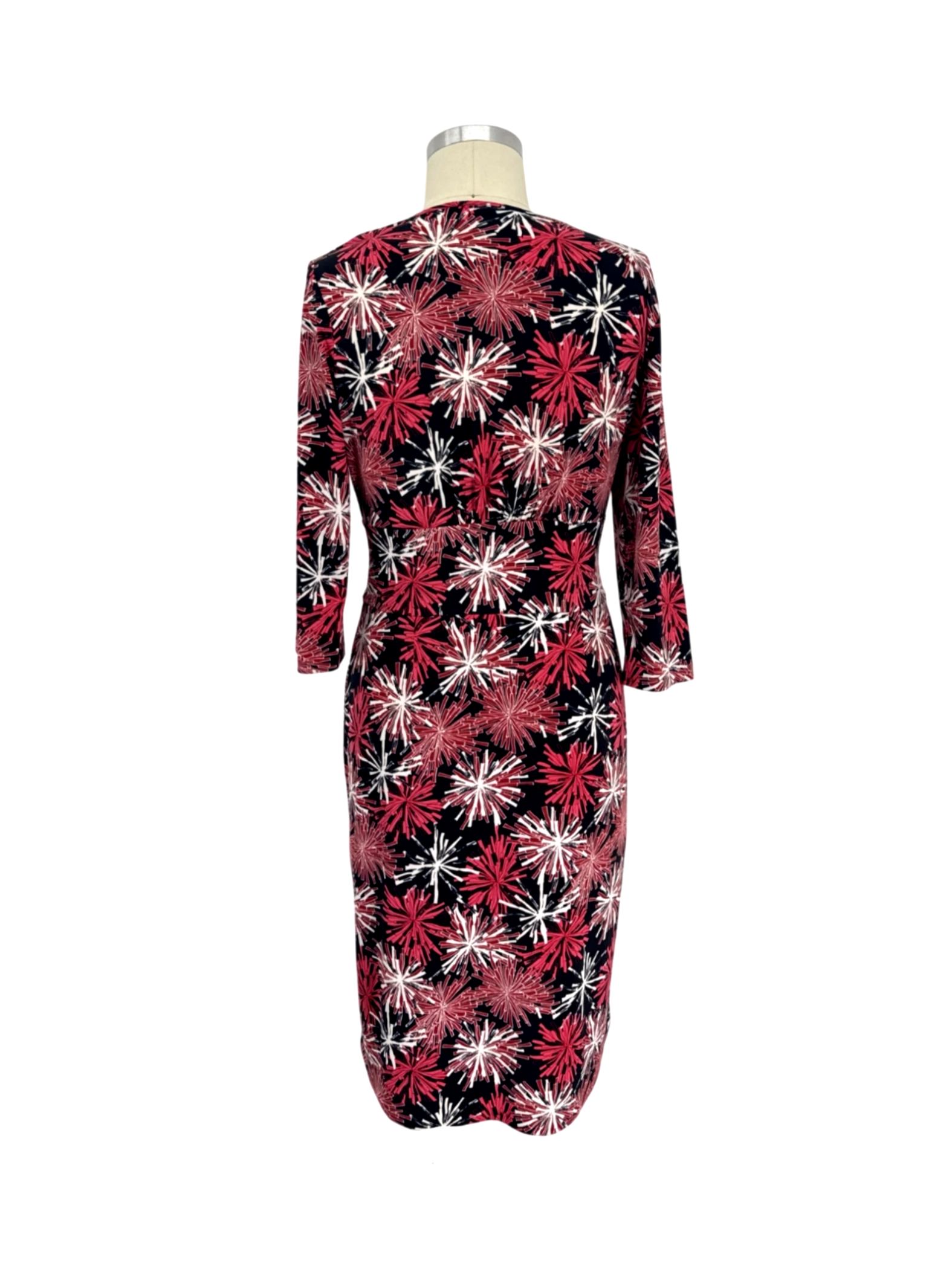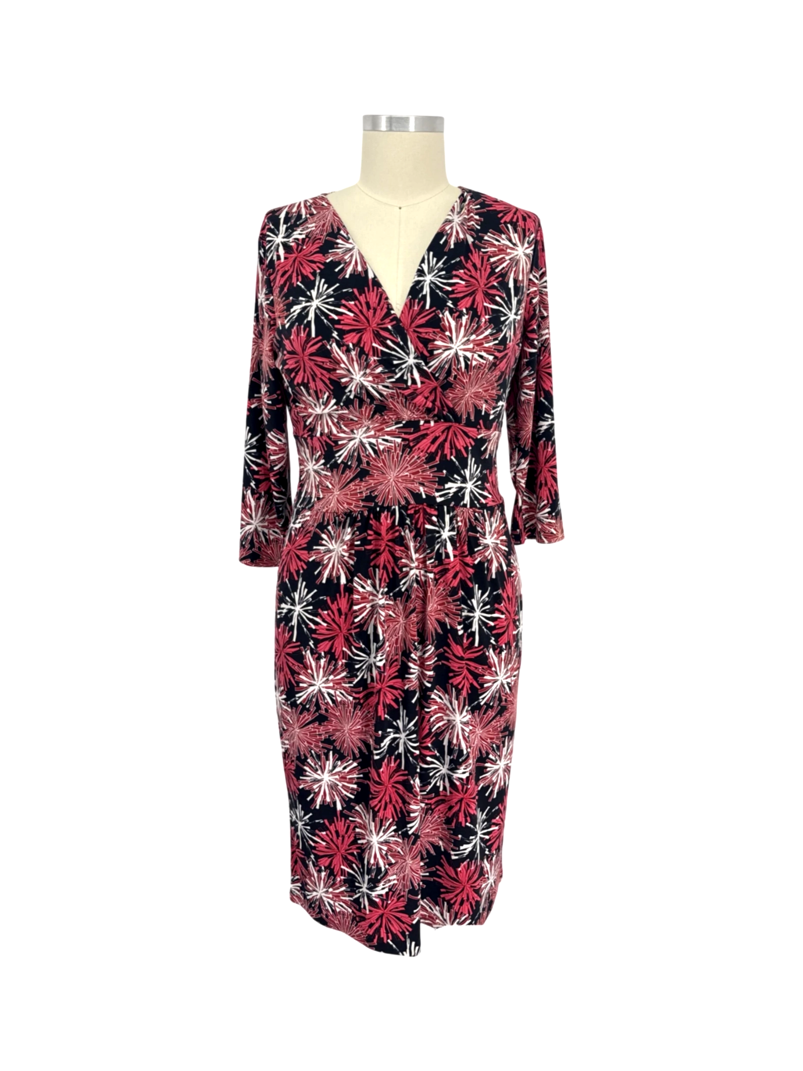 This pre-owned Talbots dress is a stylish addition to any wardrobe. It features a flattering A-line silhouette and a vibrant floral pattern in shades of red, white, and black. The dress has a V-neckline and mid-length sleeves, making it perfect for spring or fall. Crafted from comfortable polyester, this dress is both elegant and easy to care for. Ideal for casual outings, this dress offers a blend of comfort and sophistication.