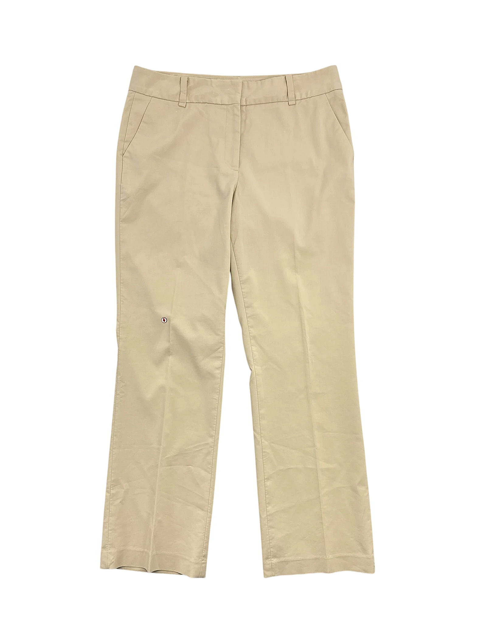Elevate your wardrobe with these pre-owned TALBOTS dress pants, a timeless classic. Crafted from a comfortable cotton blend, these pants feature a straight leg cut and a flattering silhouette. Perfect for a polished look, these pants are ideal for both office environments and casual outings. The versatile color makes them easy to pair with a variety of tops, making them a staple in any woman's closet. A great addition to your style for a sophisticated look.