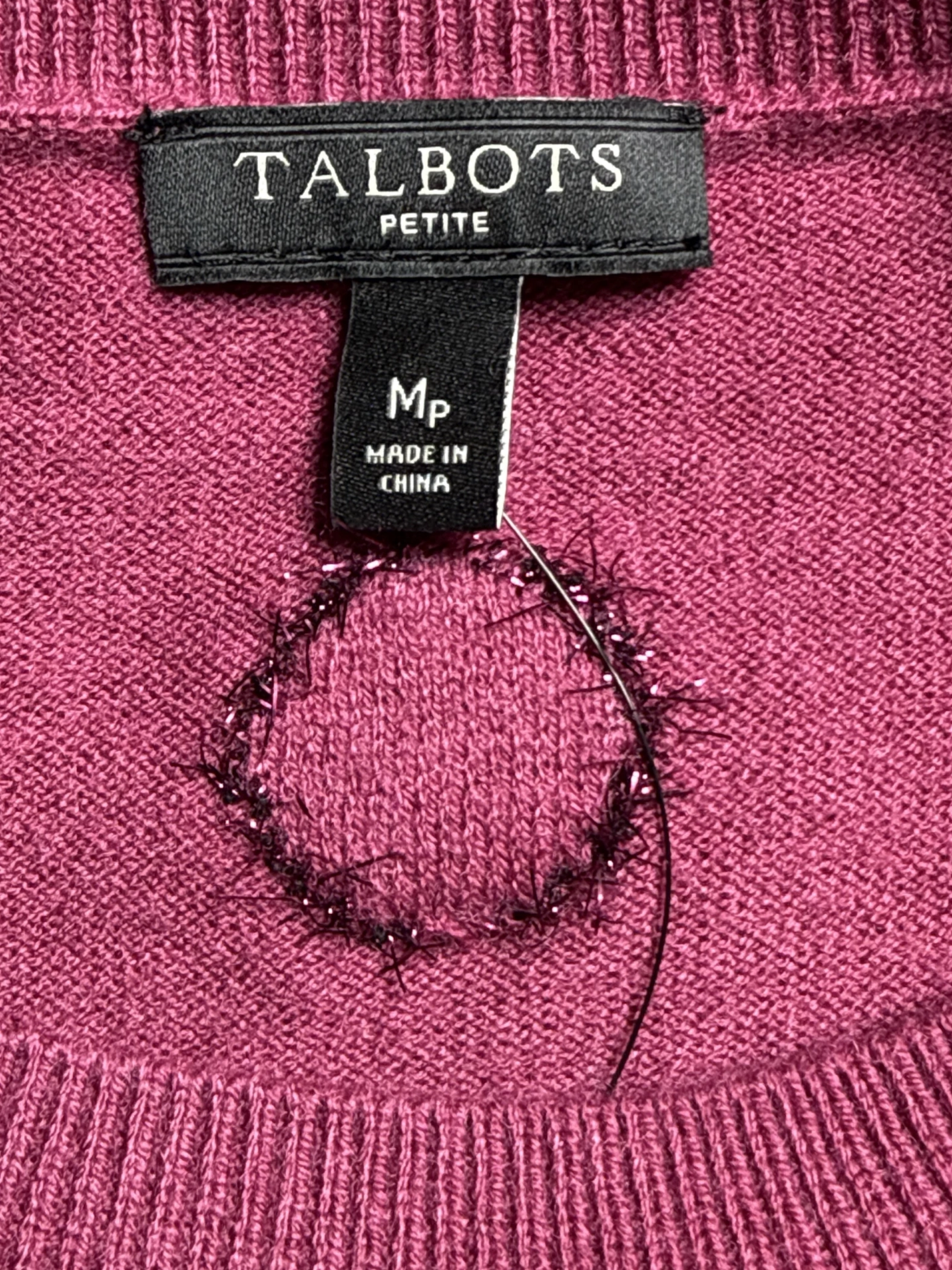 Elevate your knitwear collection with this pre-owned TALBOTS sweater. This stylish pullover features a beautiful plum hue adorned with subtle dotted detailing that adds a touch of sophistication. Crafted from a soft blend of nylon, lambswool, metallic, and other fibers, this sweater offers both comfort and a luxurious feel. Perfect for layering, this versatile piece is ideal for staying warm and fashionable during cooler seasons. This sweater adds a pop of color and texture to any wardrobe.