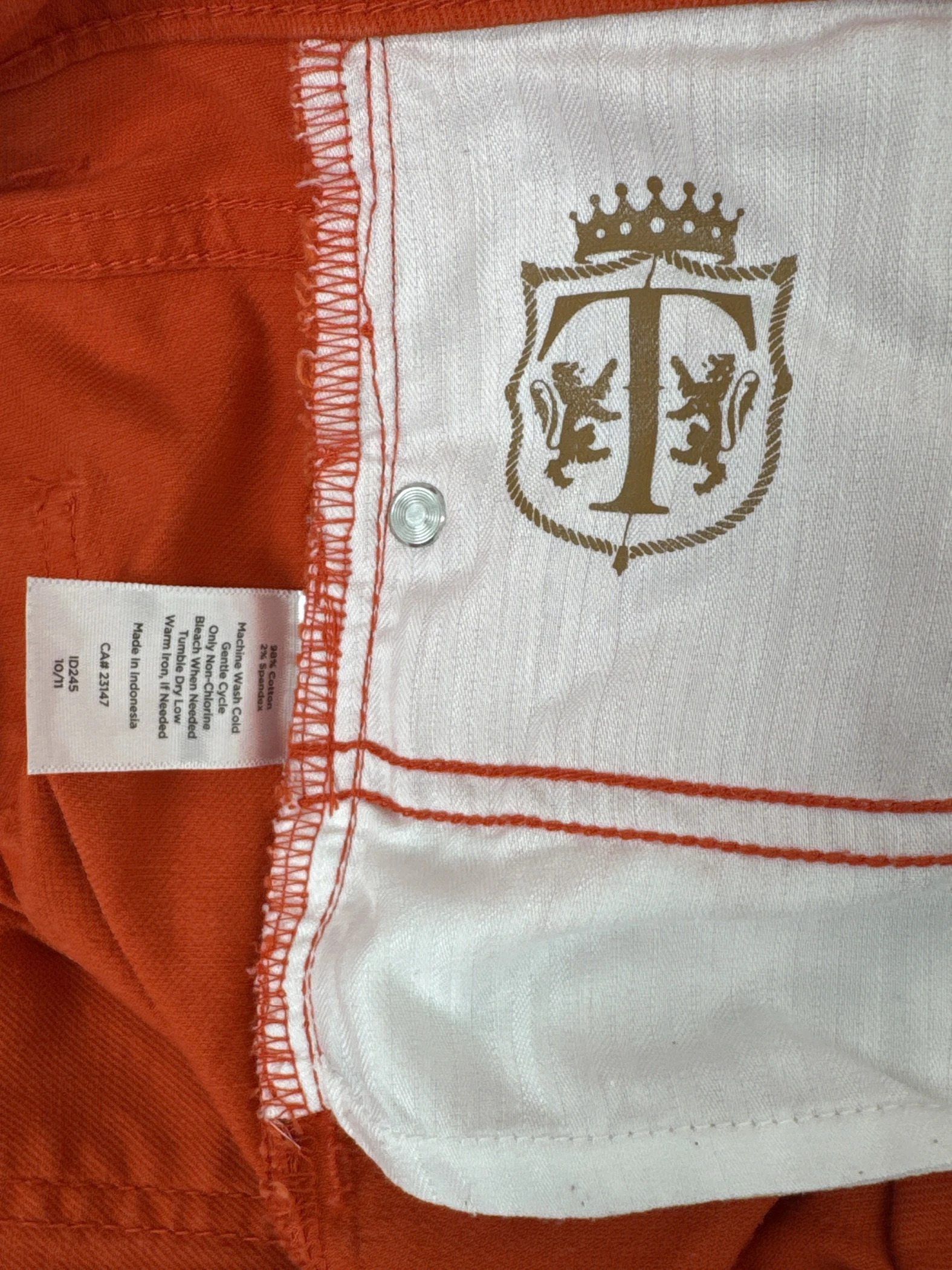 Elevate your wardrobe with these gently used Talbots bootcut jeans in a vibrant orange hue. Made from a comfortable cotton blend with a hint of spandex, these jeans offer a flattering fit and all-day wearability. Perfect for any casual occasion, these pre-loved jeans are a stylish and sustainable addition to your closet, offering a unique pop of color and a timeless silhouette. These jeans are a classic piece that can be dressed up or down, making them a versatile choice for any fashion-forward individual.