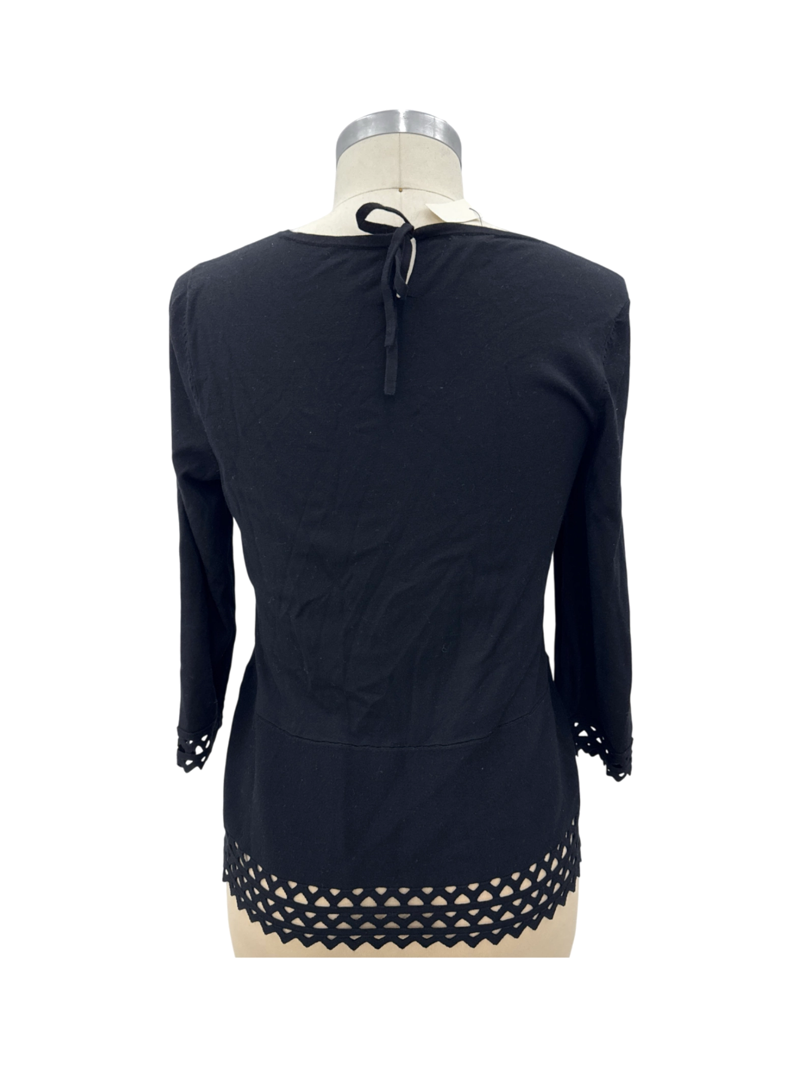 This pre-owned Talbots sweater is a classic addition to any wardrobe. Crafted from a blend of viscose and polyester, this sweater offers a comfortable and stylish fit. Featuring a round neck and a unique decorative hem, it's perfect for layering or wearing on its own. The solid black color makes it versatile for any occasion, from casual outings to smart-casual events. Made in Jordan, this sweater combines quality craftsmanship with timeless design, making it a valuable find.
