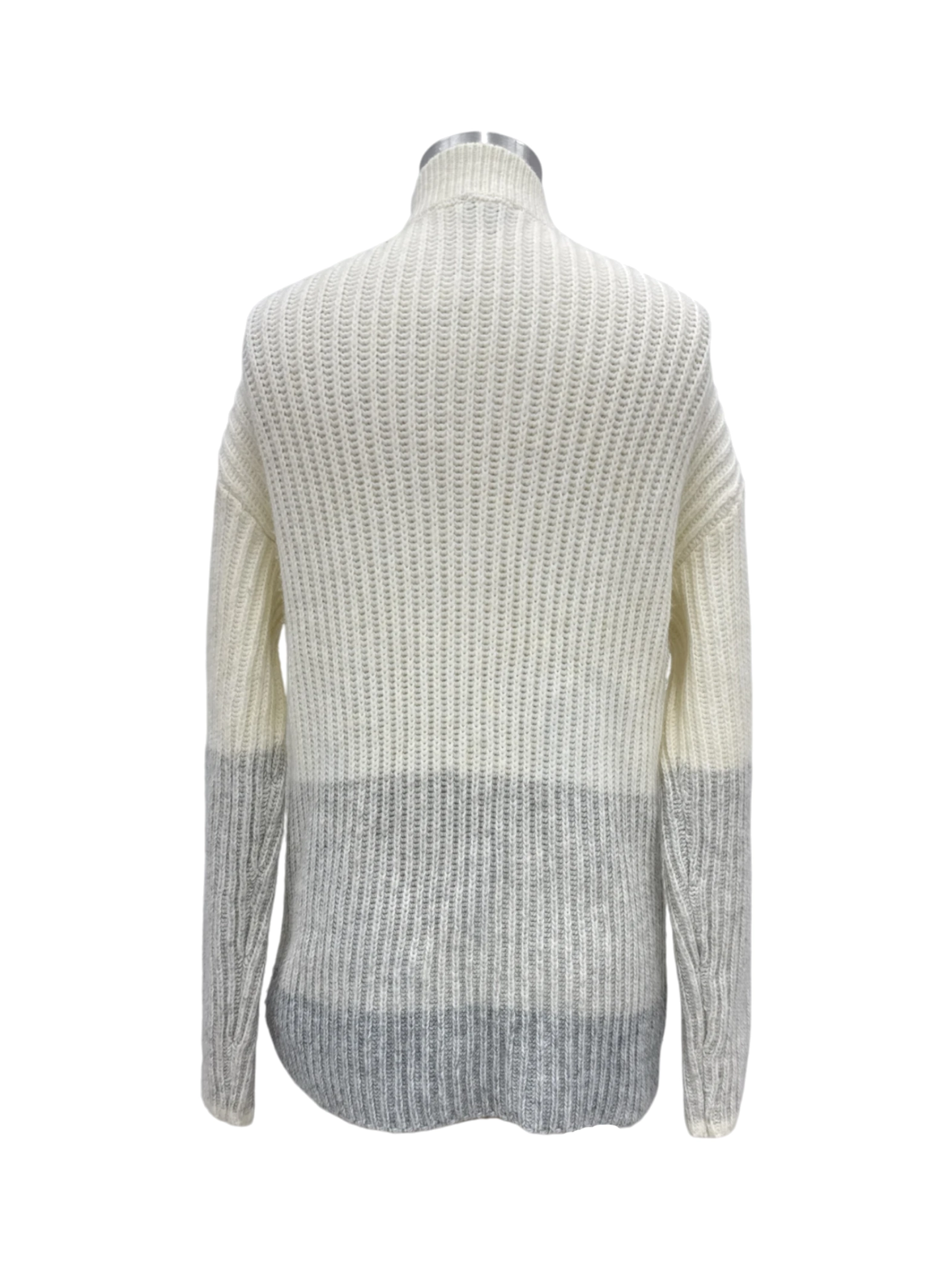 Elevate your wardrobe with this stylish pre-owned TALBOTS sweater. This sweater features a chic color block design with a flattering turtleneck and a convenient zip-up closure. Crafted from a comfortable blend of polyester, acrylic, and wool, it offers both warmth and style. Perfect for fall and winter, this versatile sweater is a must-have addition to any woman's collection. Embrace comfort and elegance with this timeless piece.