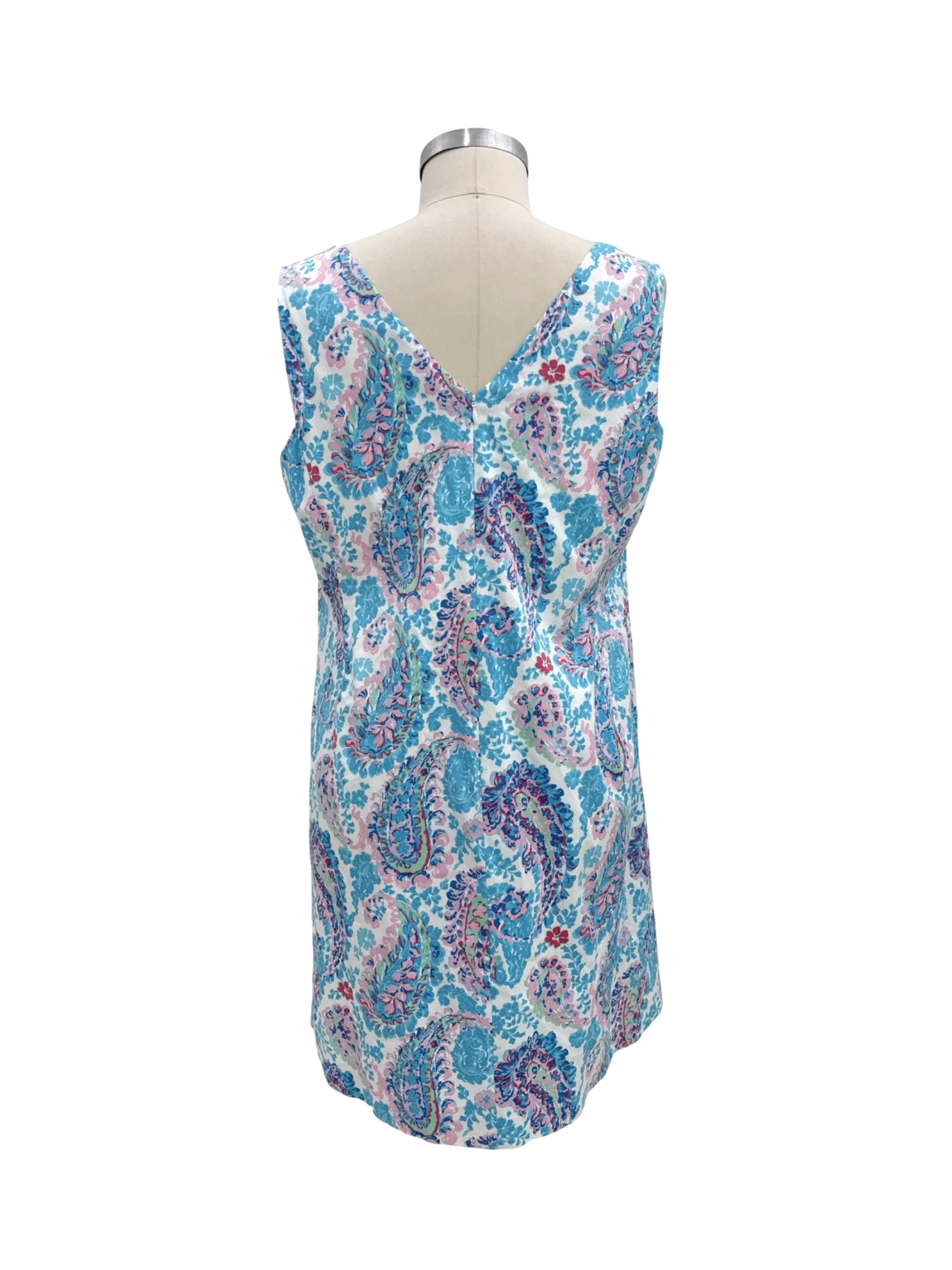 This pre-owned TALBOTS dress is perfect for a breezy summer day. The A-line silhouette flatters all figures, and the sleeveless design keeps you cool. Crafted from a comfortable cotton blend with a vibrant paisley pattern, this dress offers a touch of retro charm. The square neckline adds a modern twist to the classic shape. Ideal for casual outings or daytime events.