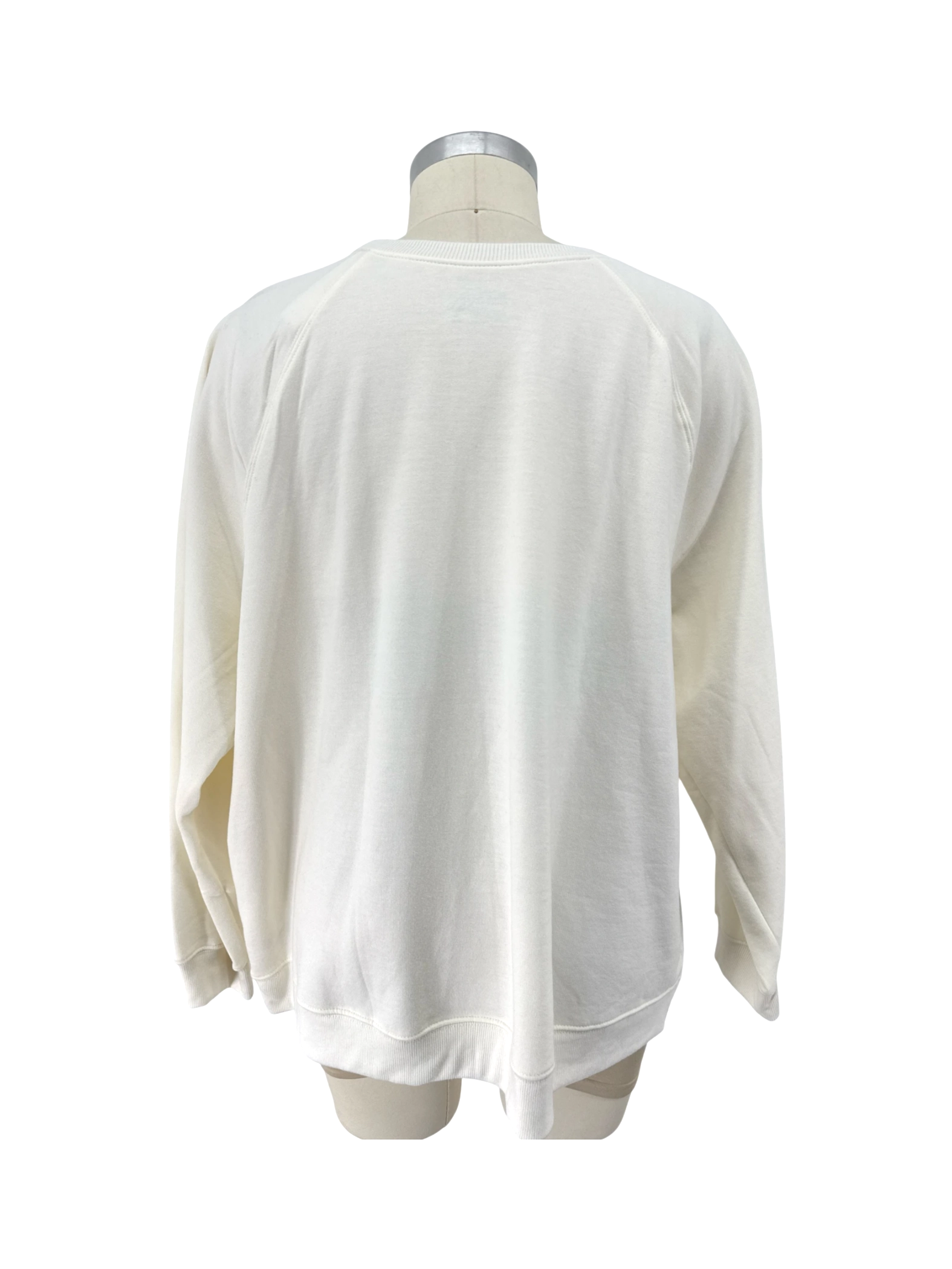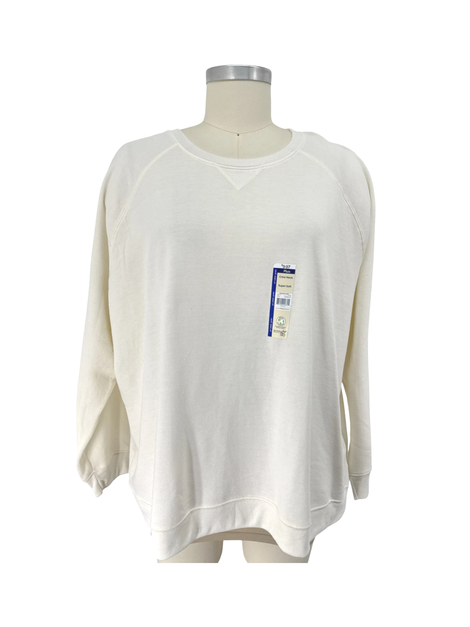 This Terra & Sky cream-colored sweater is a comfortable and stylish addition to any wardrobe. It features a classic crew neck, long sleeves, and is made from a soft blend of polyester, rayon, and cotton. The relaxed fit and neutral ivory color make it a versatile piece, perfect for layering during the fall and winter seasons. This pre-owned sweater offers both comfort and style, suitable for everyday wear.