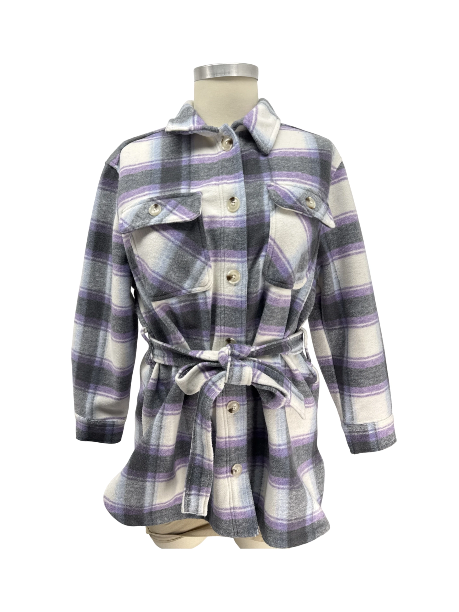 Embrace cozy style with this Terra & Sky plaid jacket, a pre-owned gem perfect for layering. This jacket features a stylish plaid pattern, a flattering fit, and a belt for added shape. Made from a blend of polyester and recycled polyester, it offers both comfort and sustainability. Ideal for fall and winter, this jacket is a versatile addition to any wardrobe. Available in size 0X, it's a chic and eco-conscious find.
