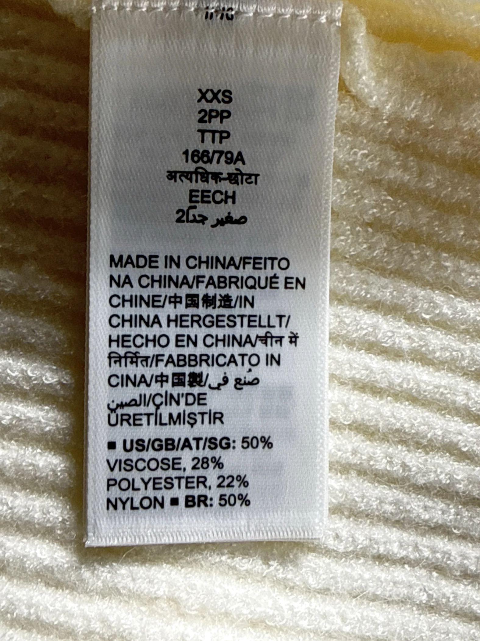 Elevate your everyday style with this pre-loved The Drop sweater. This ivory sweater is perfect for layering in any season. The rib knit adds visual interest, while the relaxed fit ensures all-day comfort. Made from a blend of viscose, polyester and nylon, it offers a luxurious feel and easy care. This piece is a versatile addition to your wardrobe, ideal for creating chic and effortless outfits.