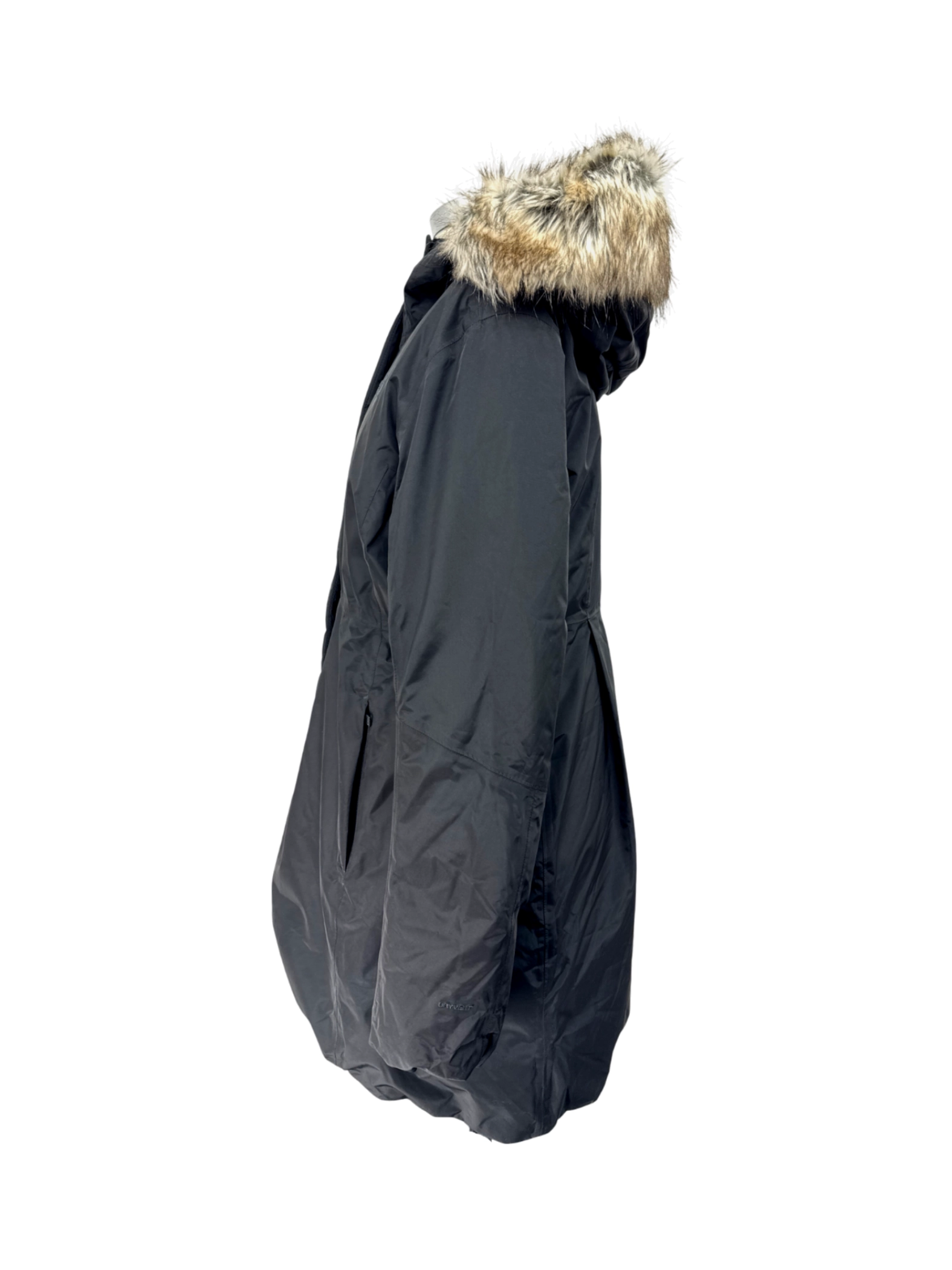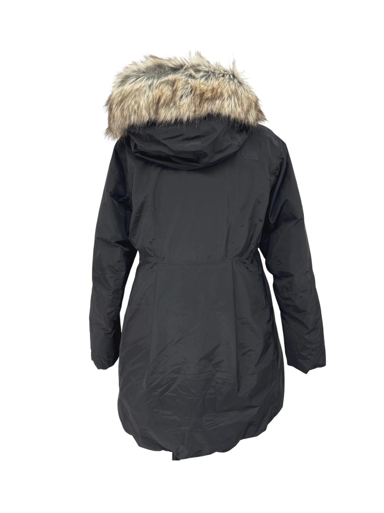 Stay warm and stylish this winter with this pre-owned The North Face coat. This women's parka-style coat features a cozy faux fur trimmed hood and is perfect for cold weather. The black color and classic design make it a versatile piece that can be easily paired with any outfit. Made with high-quality materials including polyester and a faux fur trim, this coat offers both comfort and durability. Ideal for outdoor adventures or everyday wear. Embrace the cold with confidence in this functional and fashionable coat.