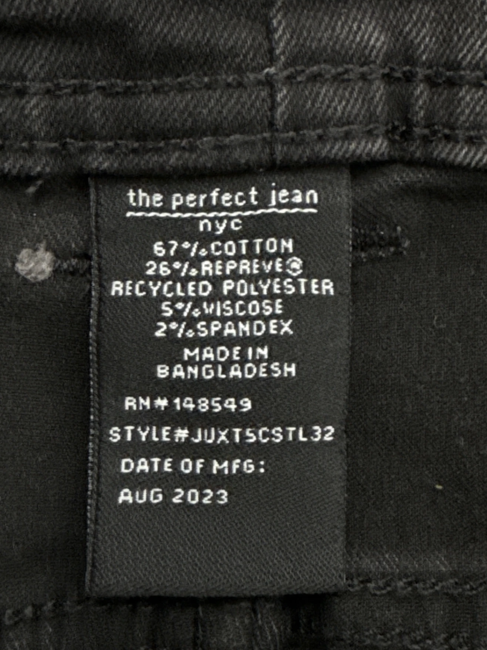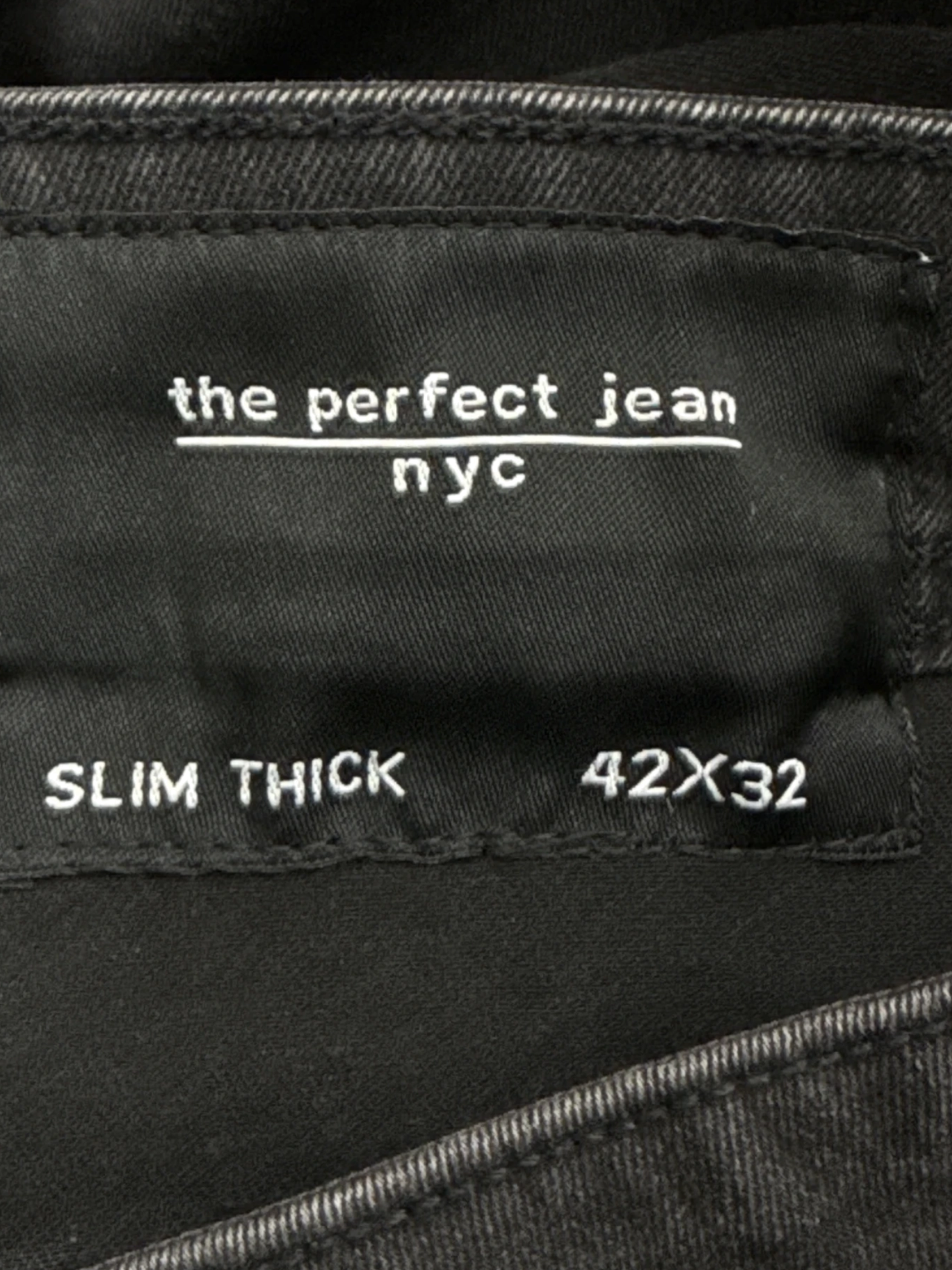 Get a stylish and sustainable look with these pre-owned the perfect jean nyc jeans. They offer a comfortable slim fit with a straight leg, perfect for any occasion. Made from a blend of cotton, recycled polyester, and spandex, these jeans offer durability and a great feel. The dark wash gives them a versatile look that pairs well with anything. Enjoy a perfect fit with a size 42x32, and elevate your wardrobe with a touch of eco-consciousness. Made in Bangladesh.