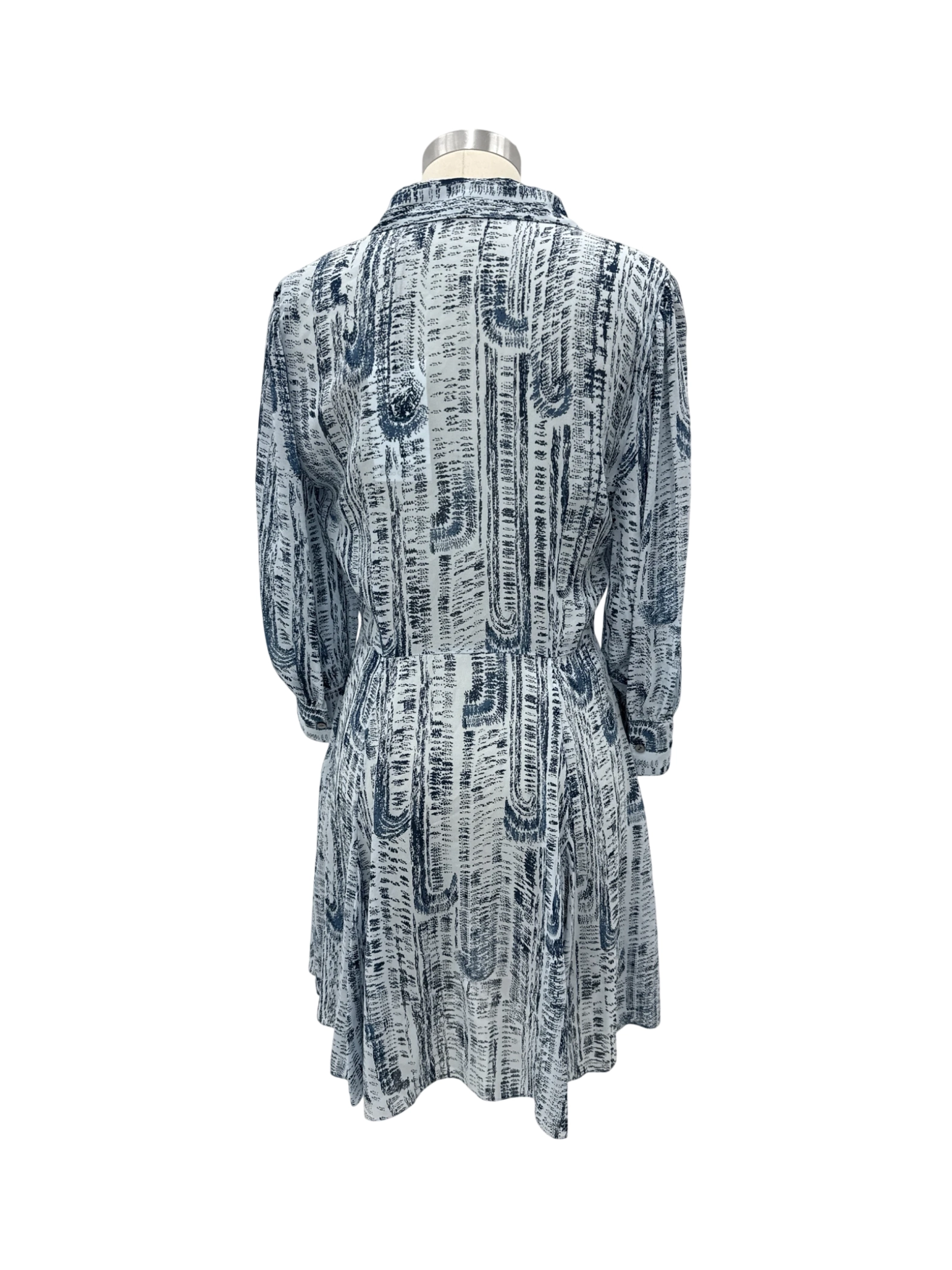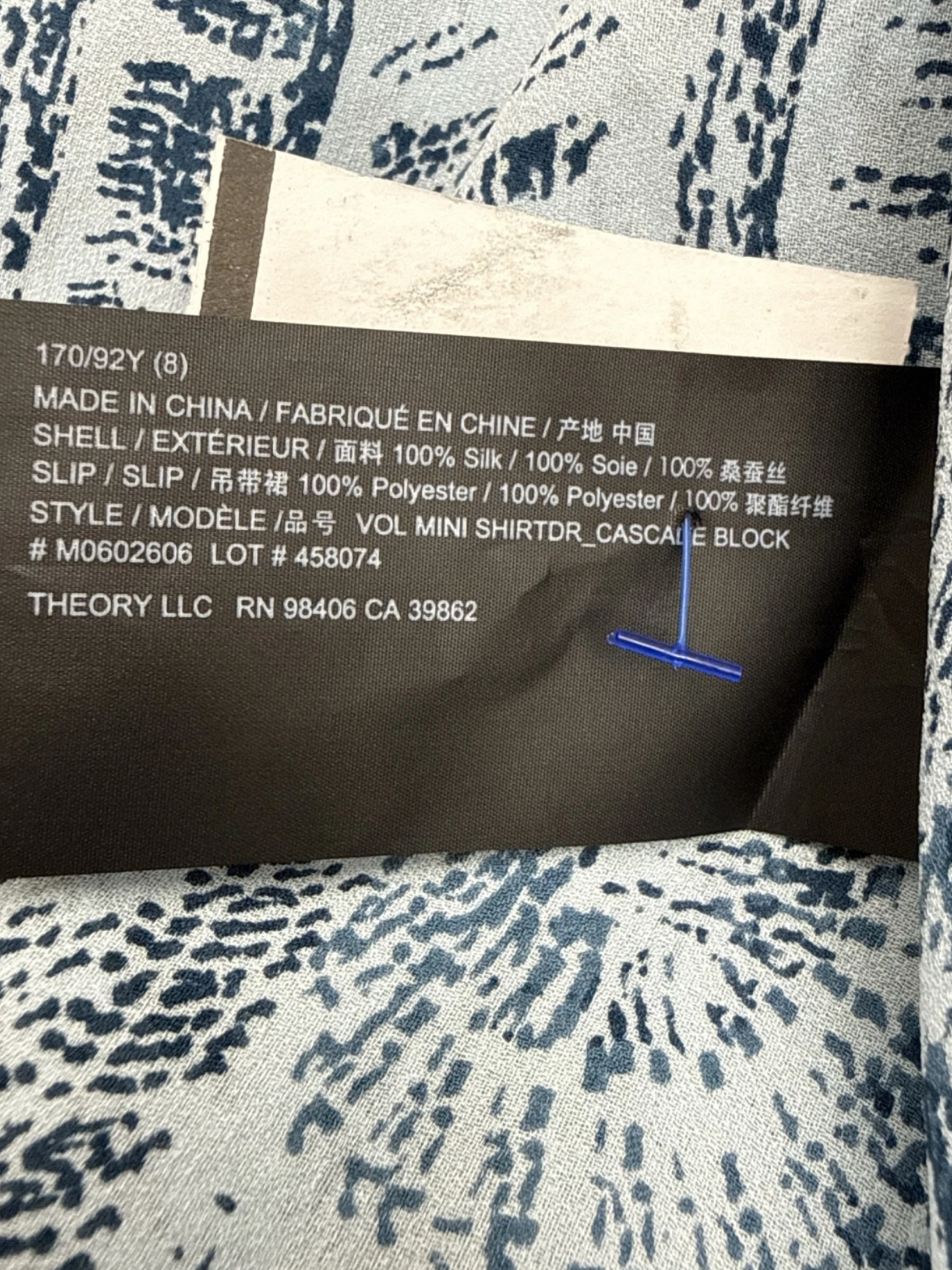 This Theory mini dress is a stylish pre-owned find. Featuring a unique abstract print, it blends the sophistication of silk with the practicality of polyester. The dress boasts a classic A-line silhouette, a collared neckline, and long sleeves. Its versatile design makes it suitable for spring and fall. The dress is a perfect addition to any wardrobe, offering both comfort and a touch of elegance for everyday wear. A great find for those seeking a designer piece at a great price. - This beautiful pre-owned Theory dress features a chic A-line silhouette, long sleeves, and a stylish collar neckline. The dress showcases a unique multicolor pattern. Crafted from a blend of polyester and silk, it offers both comfort and elegance. Perfect for casual outings, this dress is a versatile addition to any wardrobe. A great find for those who appreciate quality and style in their clothing. Size 8.