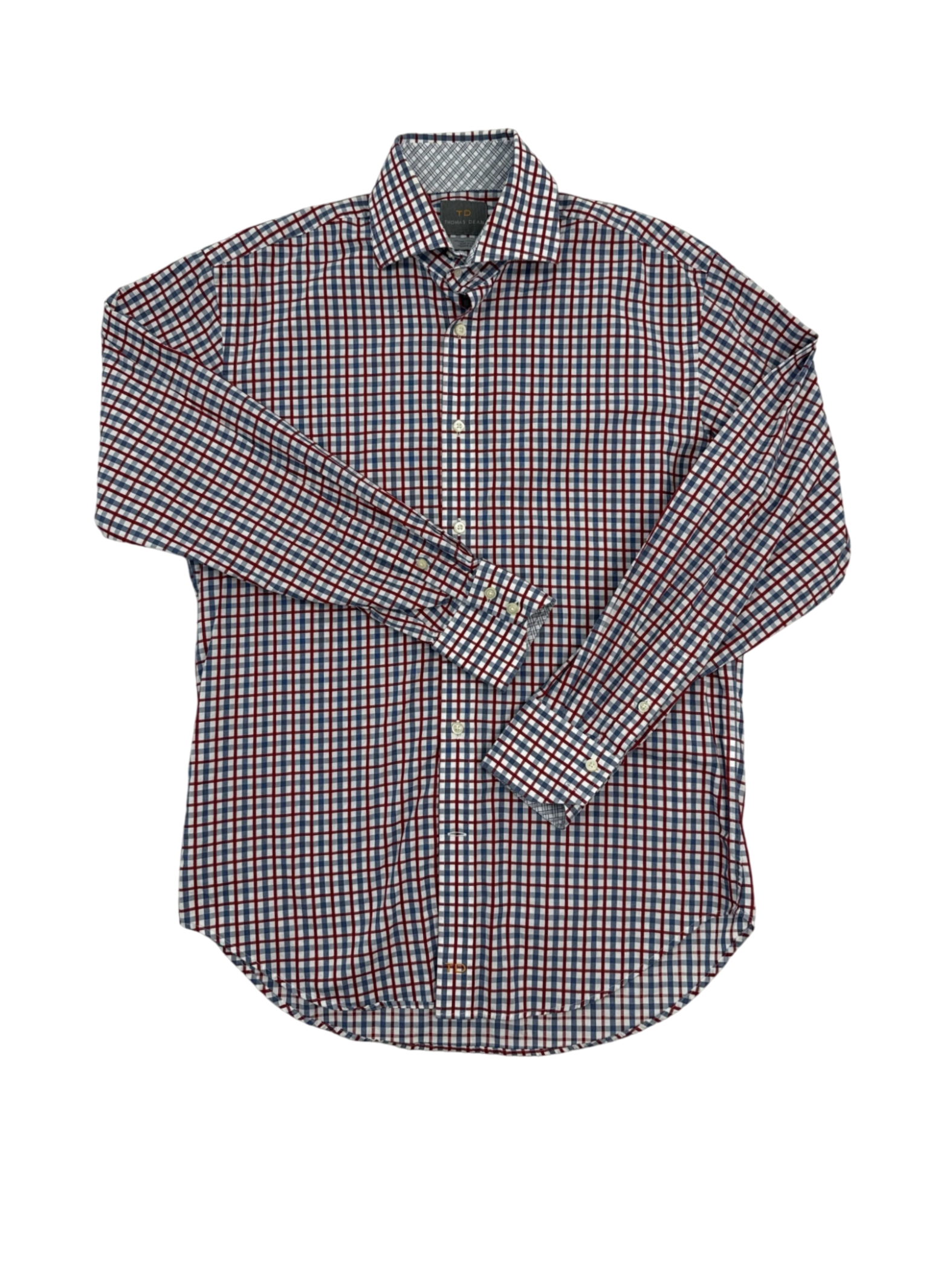 Elevate your wardrobe with this stylish Thomas Dean long sleeve shirt. Crafted from premium 100% Pima cotton, this shirt offers both comfort and durability. The checkered pattern and classic collar add a touch of sophistication. Perfect for any occasion, from casual outings to business casual events. This pre-owned shirt is in excellent condition and ready to add a touch of elegance to your everyday look.
