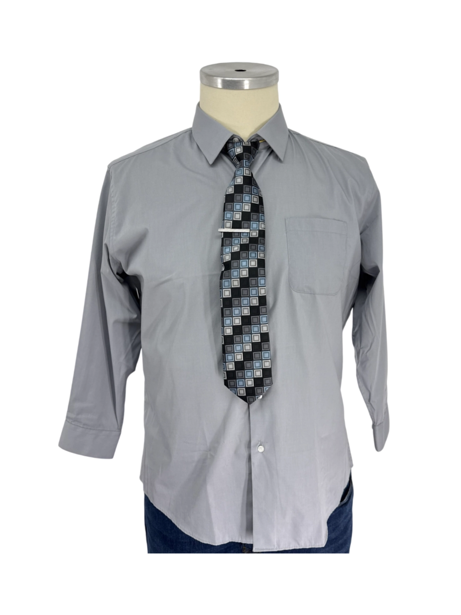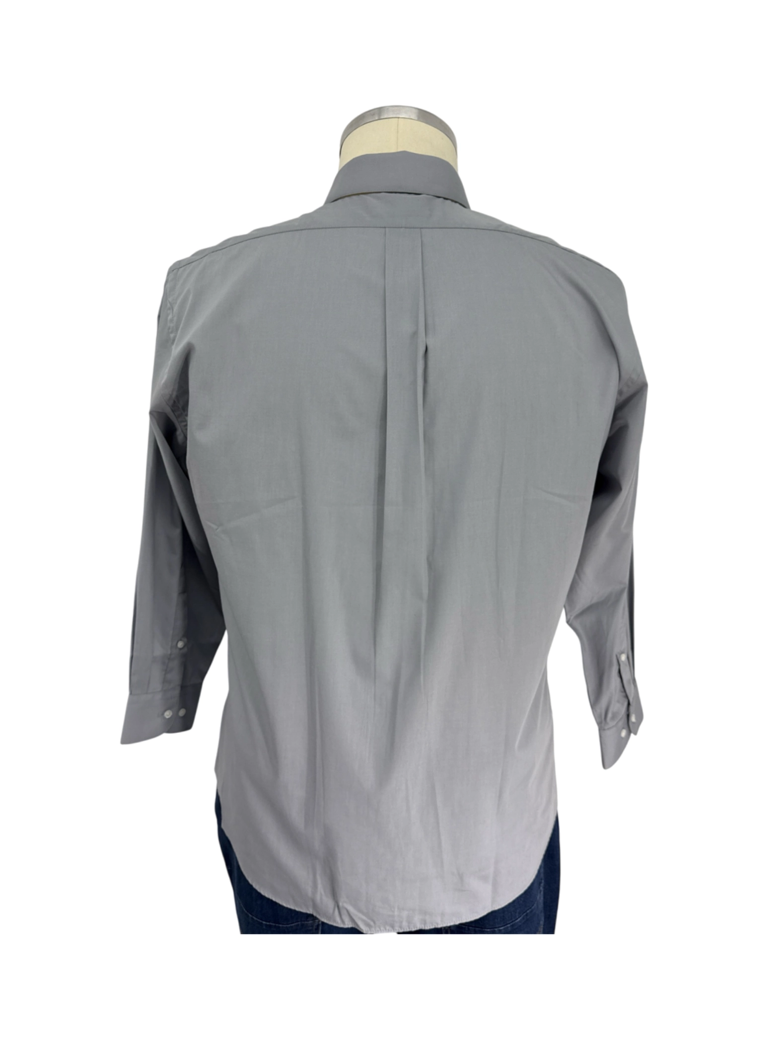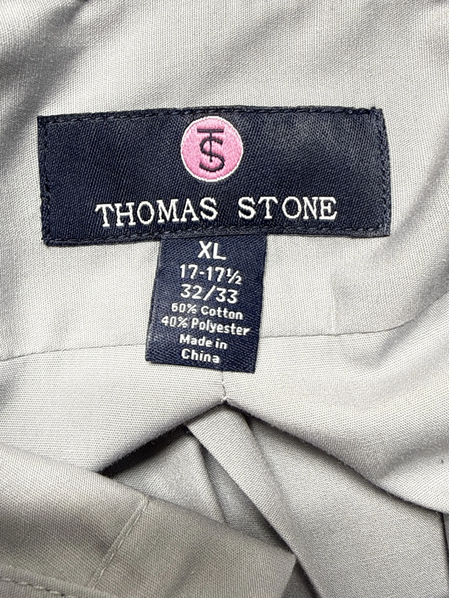 Elevate your wardrobe with this stylish pre-owned Thomas Stone long sleeve shirt. Crafted with a blend of high-quality cotton and polyester, this shirt offers both comfort and durability. Featuring a classic collar and button-up closure, it is perfect for both formal and casual occasions. The versatile gray color makes it easy to pair with a variety of outfits. Get this shirt and make a statement!