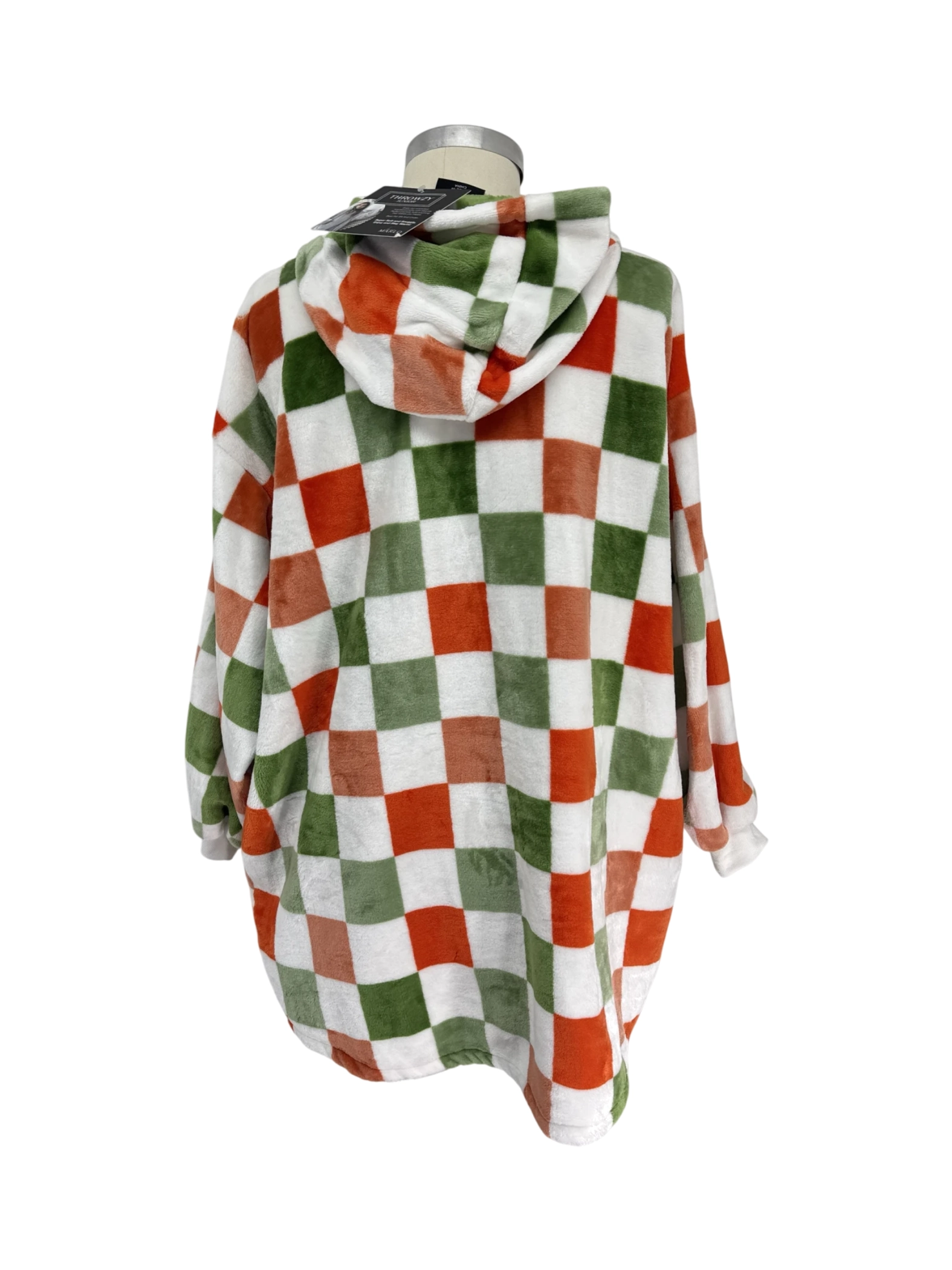 This pre-owned Throwzy hooded poncho is the perfect oversized, cozy garment for chilly days. It features a vibrant checkerboard pattern in red, green, and white. Made from soft polyester, this one-size-fits-all poncho is ideal for lounging or adding a pop of color to your everyday look. The poncho is easy to care for, making it a practical and stylish addition to your wardrobe.