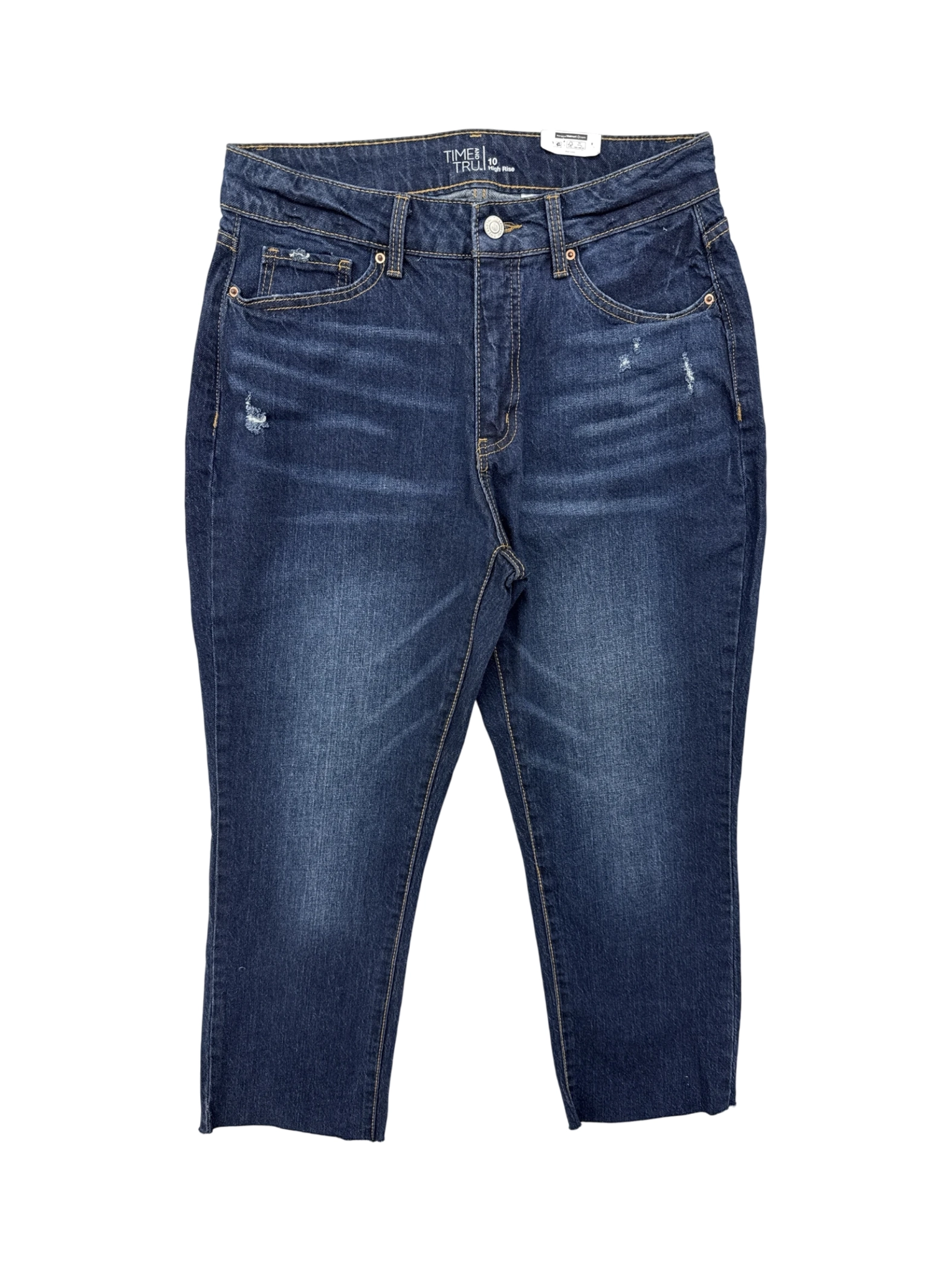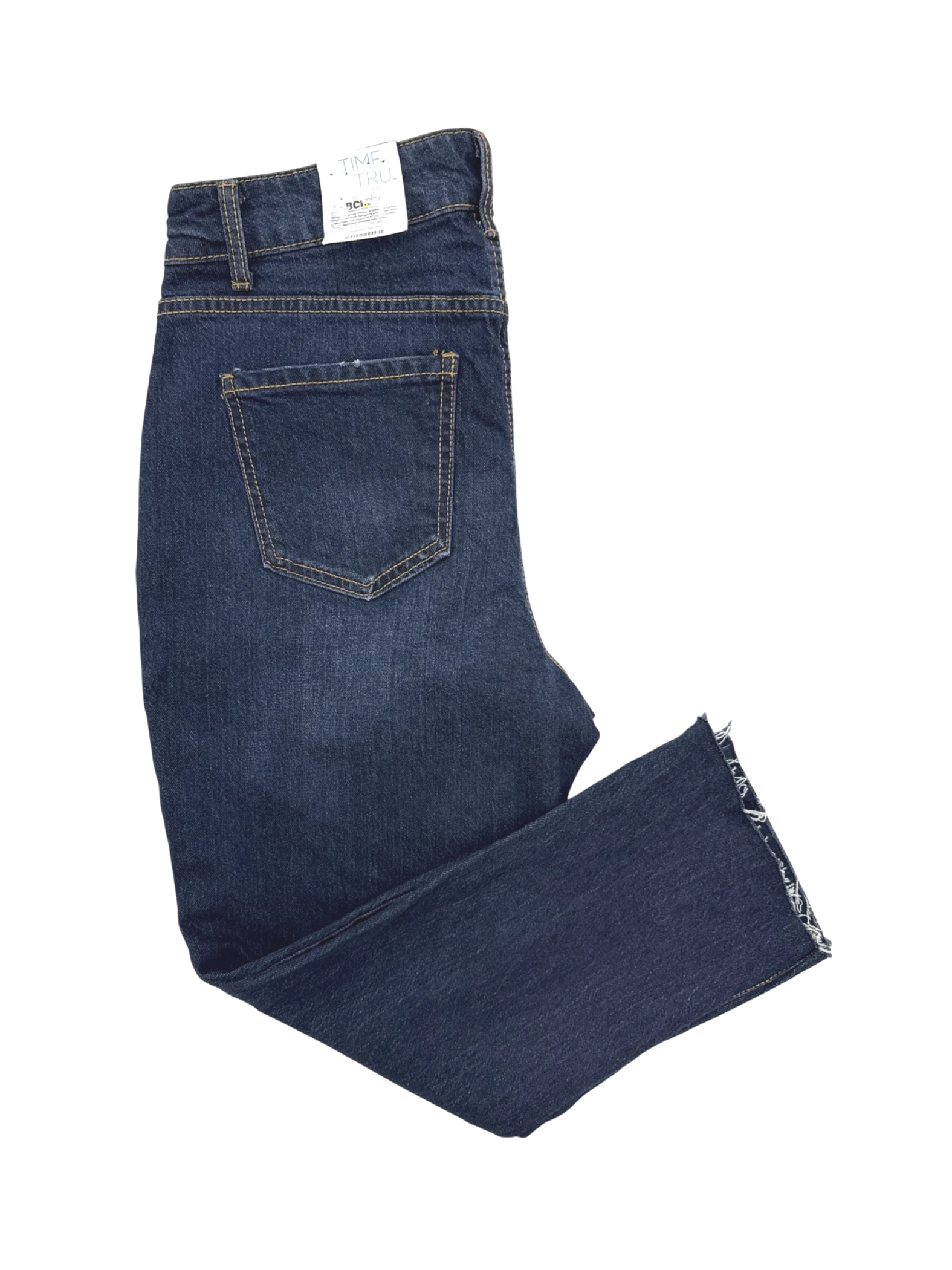 These pre-owned Time and Tru jeans are a must-have for your denim collection. Featuring a classic skinny leg cut, these jeans offer a flattering fit. Crafted from a comfortable cotton blend, these jeans are perfect for everyday wear. With a dark wash finish, they're versatile enough to dress up or down. They're in great condition, ready to become your new favorite jeans. These stylish jeans come in a size 10.