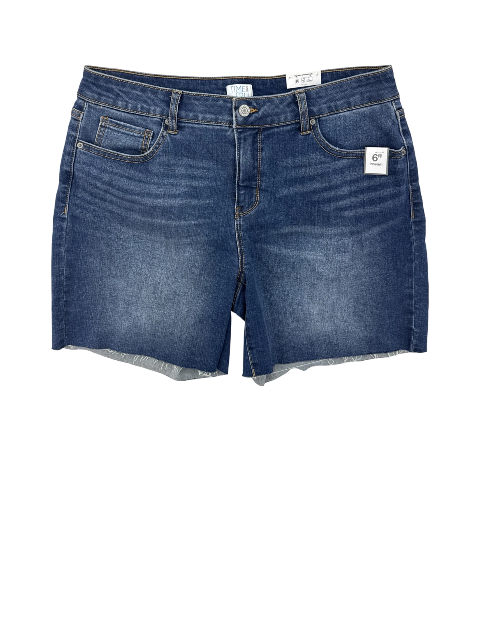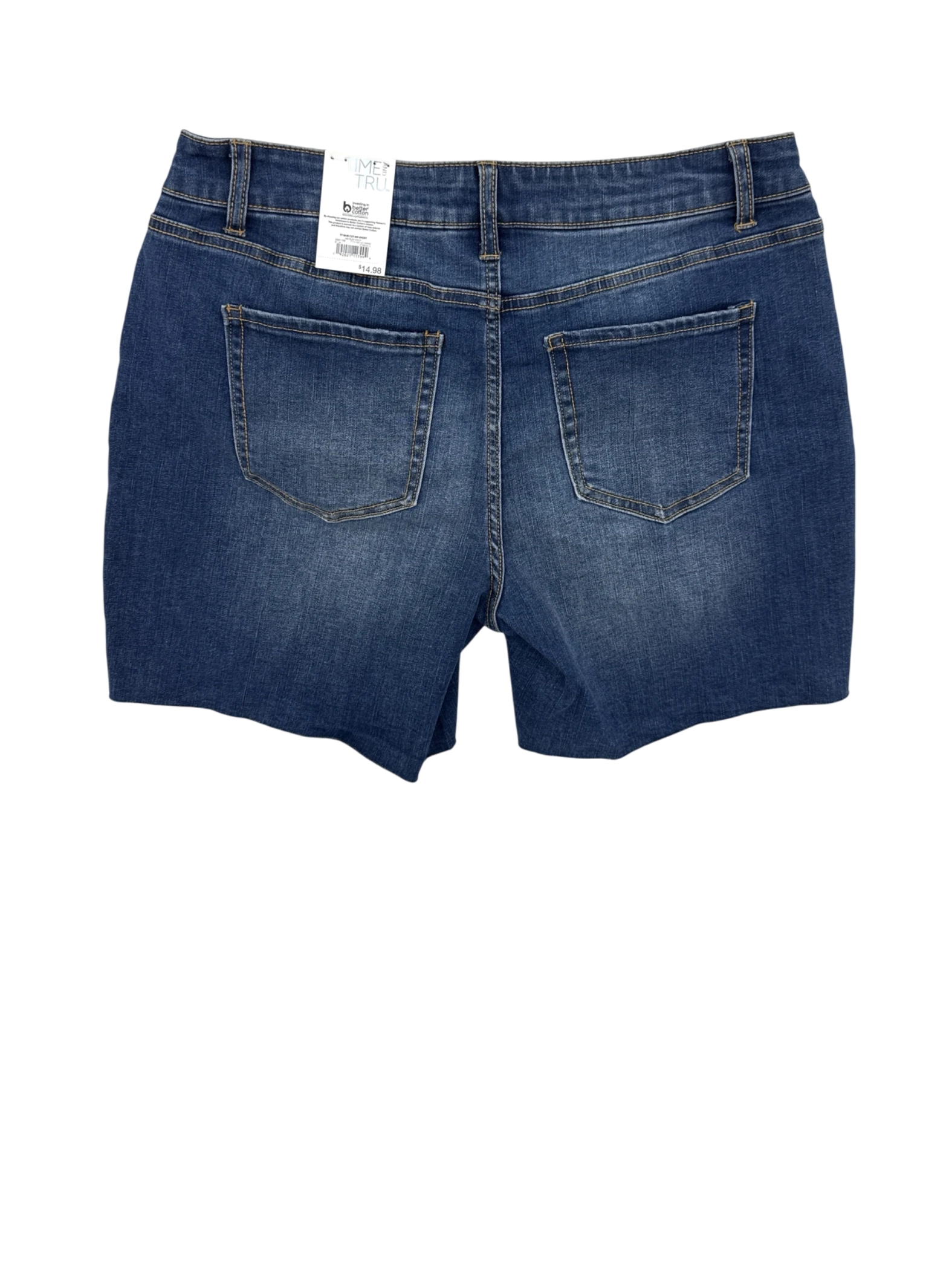 These Time and Tru denim shorts are the perfect addition to your summer wardrobe. They feature a classic denim design in a stylish blue wash. Made from a durable cotton blend with a touch of spandex for comfort and stretch, these shorts are ideal for everyday wear. The raw hem adds a modern touch, while the timeless style ensures they'll be a versatile piece in your closet. Perfect for casual outings or dressing up. - These Time and Tru denim shorts are the perfect addition to your summer wardrobe. They feature a classic denim wash, a comfortable fit, and a raw hem for a trendy look. The shorts are made from a blend of cotton, polyester and spandex, making them both durable and stretchy. Whether you're heading to the beach or running errands, these shorts are a versatile and stylish choice. This pre-owned pair is a great value, offering both style and sustainability.
