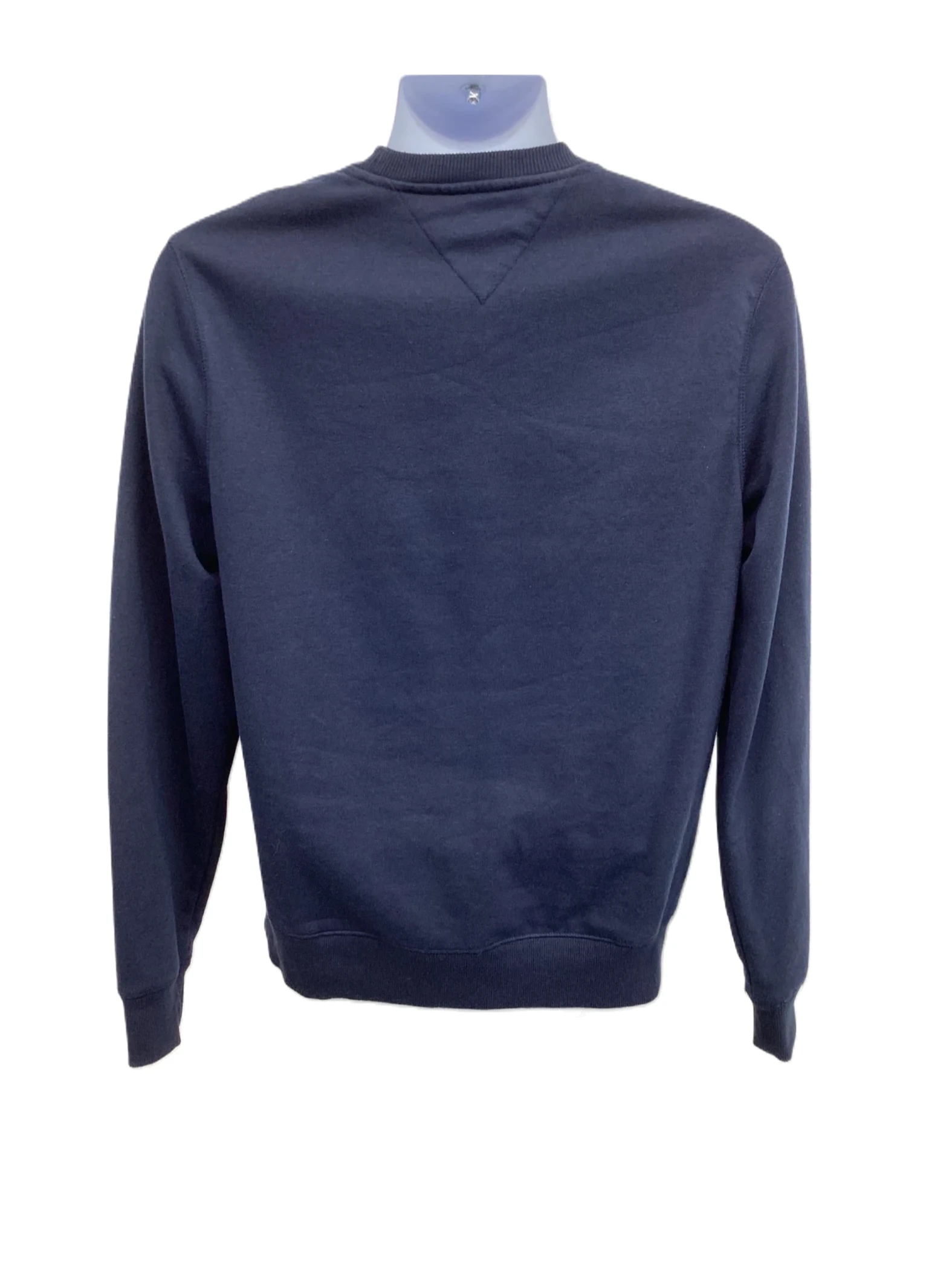 This is a navy blue long sleeve sweater with a v-neck.