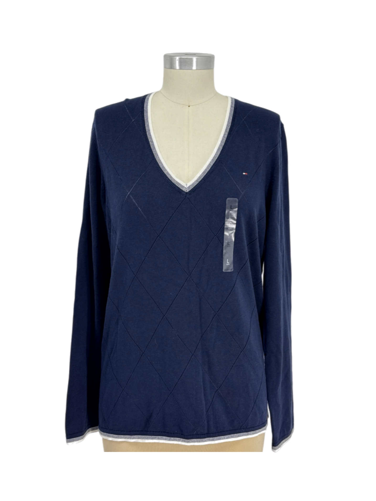 Elevate your wardrobe with this pre-owned Tommy Hilfiger sweater, a stylish piece perfect for cooler seasons. Crafted from a comfortable cotton blend, it features a classic V-neck design and a timeless pattern. The sweater is in great condition, adding a touch of sophistication to any outfit. Ideal for casual outings or layering, it offers both comfort and style.